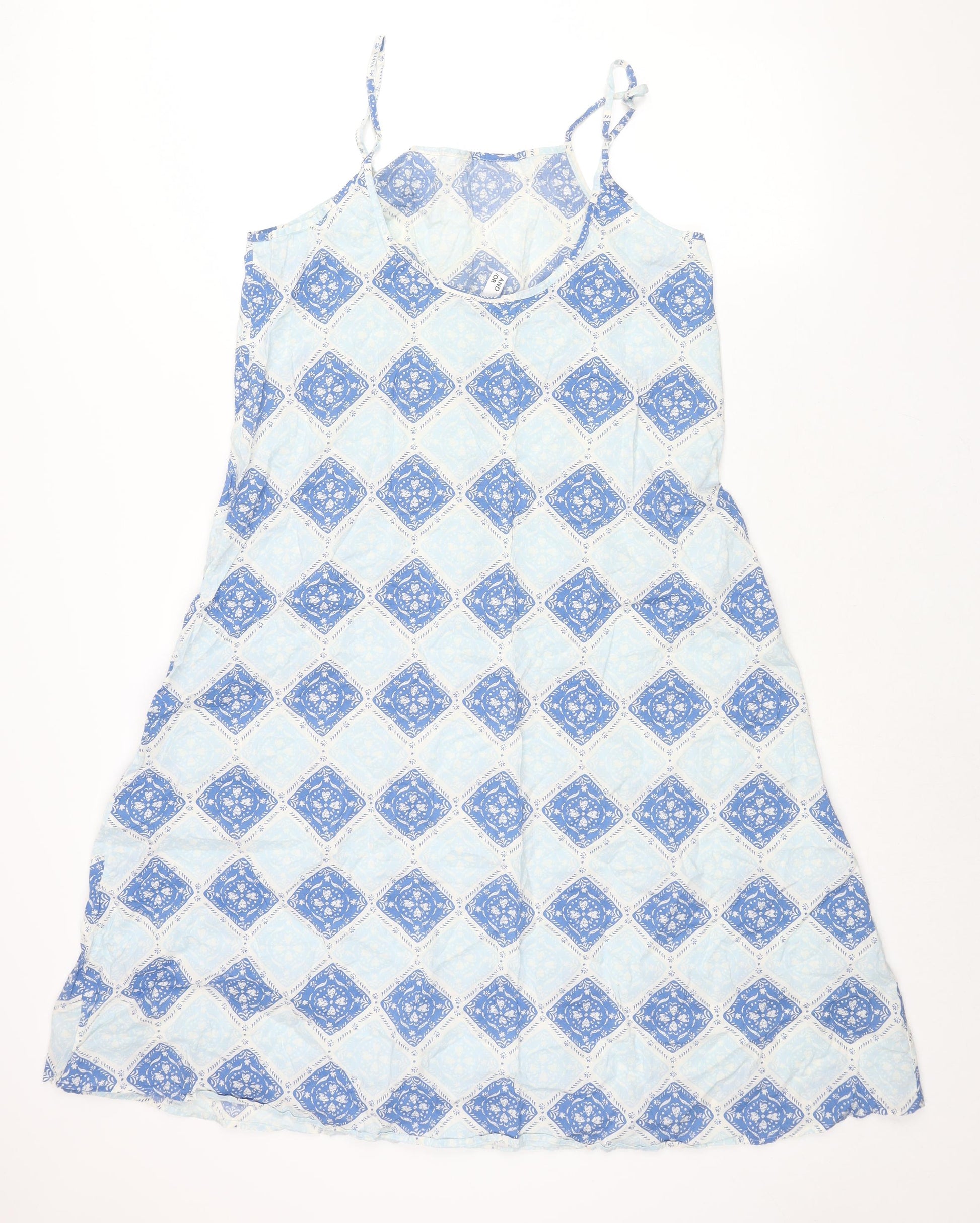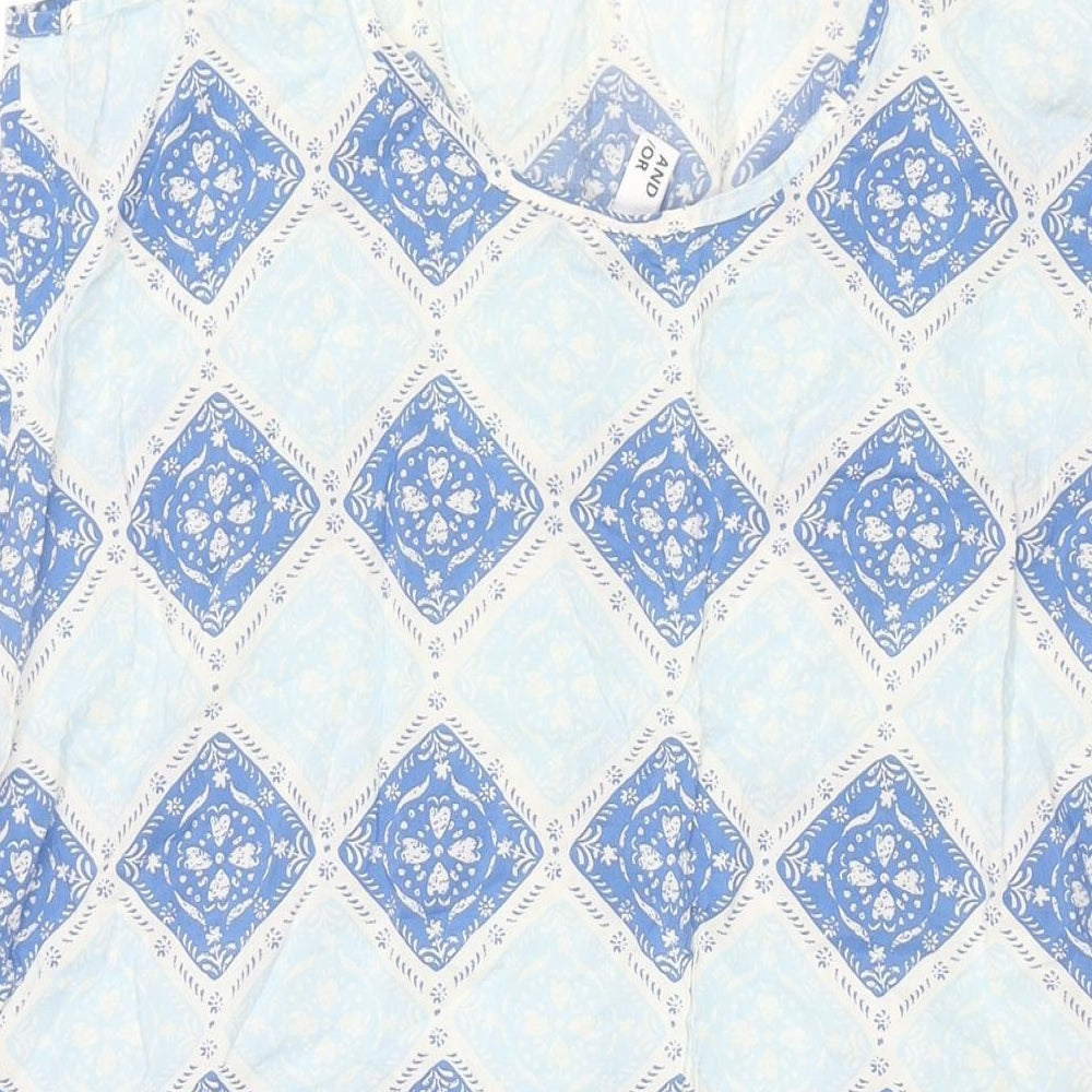 AND/OR Womens Blue Geometric Cotton Shift Size 10 Scoop Neck Pullover