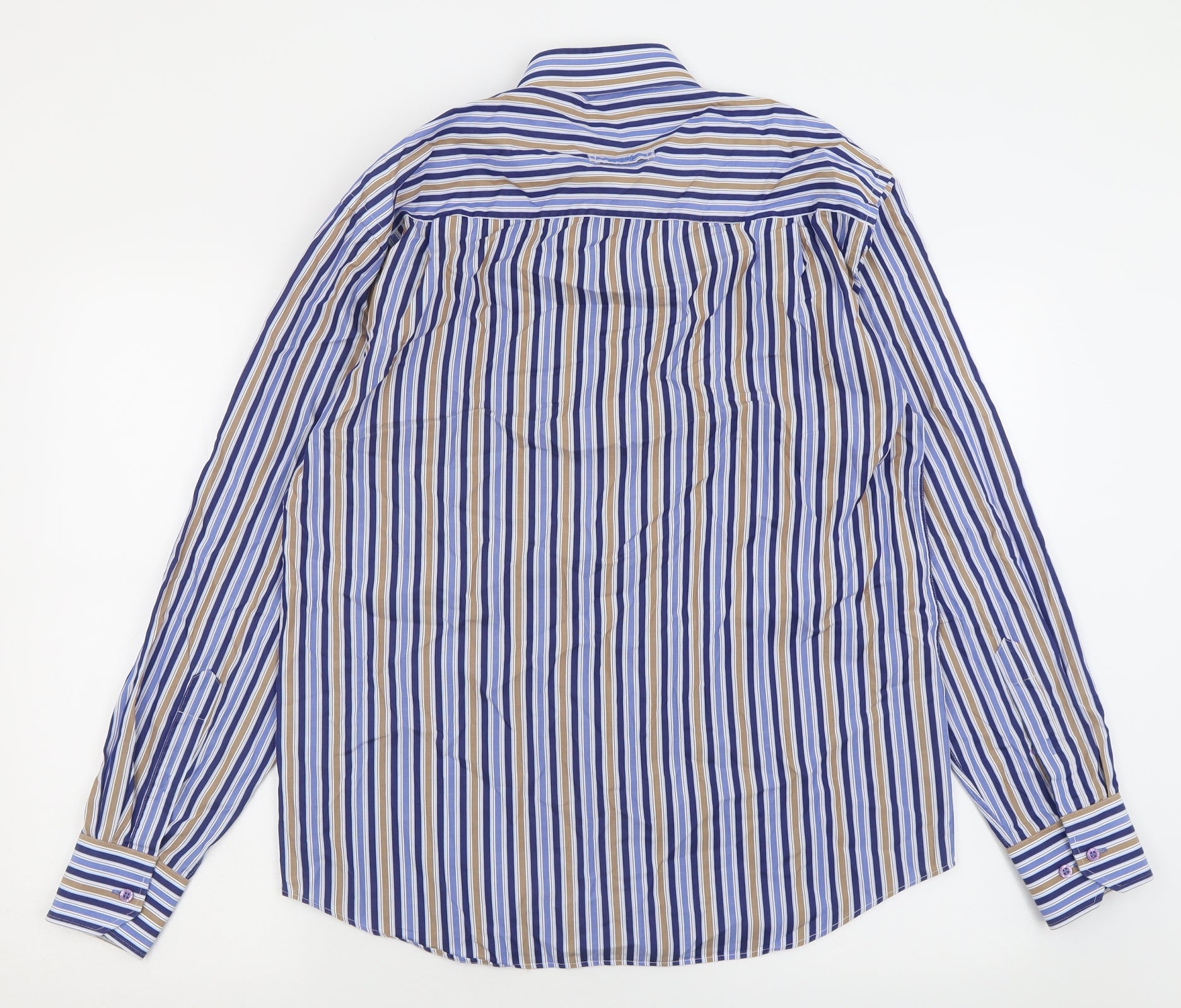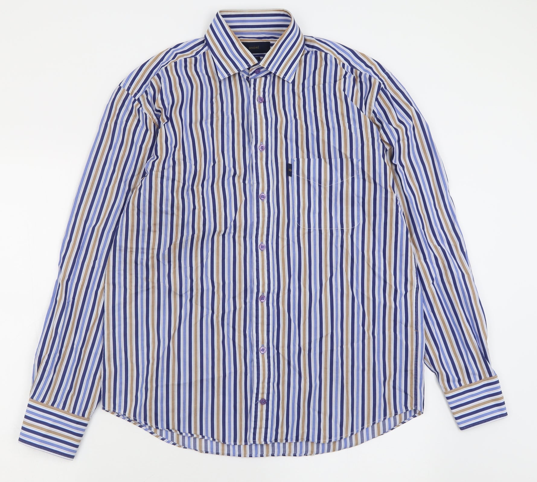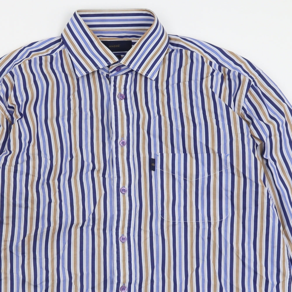 Andre Mens Blue Striped Cotton Button-Up Size M Collared Button