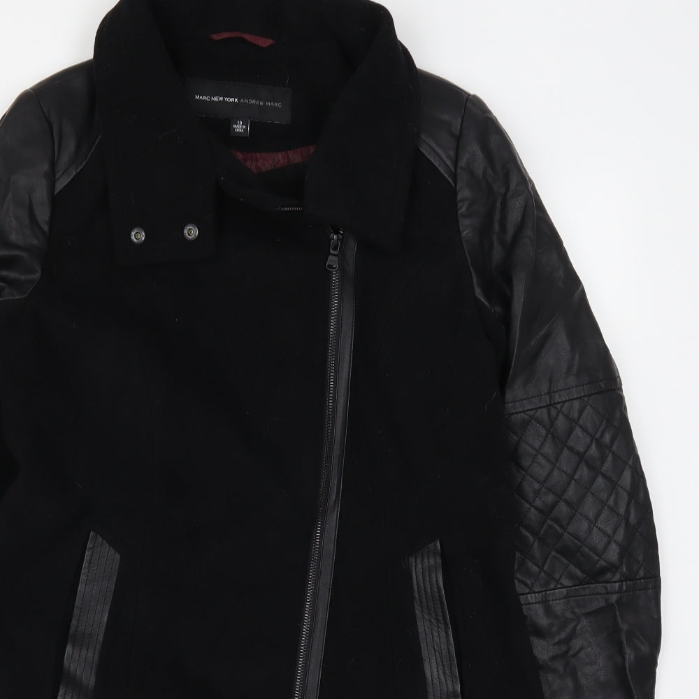 Andrew Marc Womens Black Trench Coat Coat Size 10