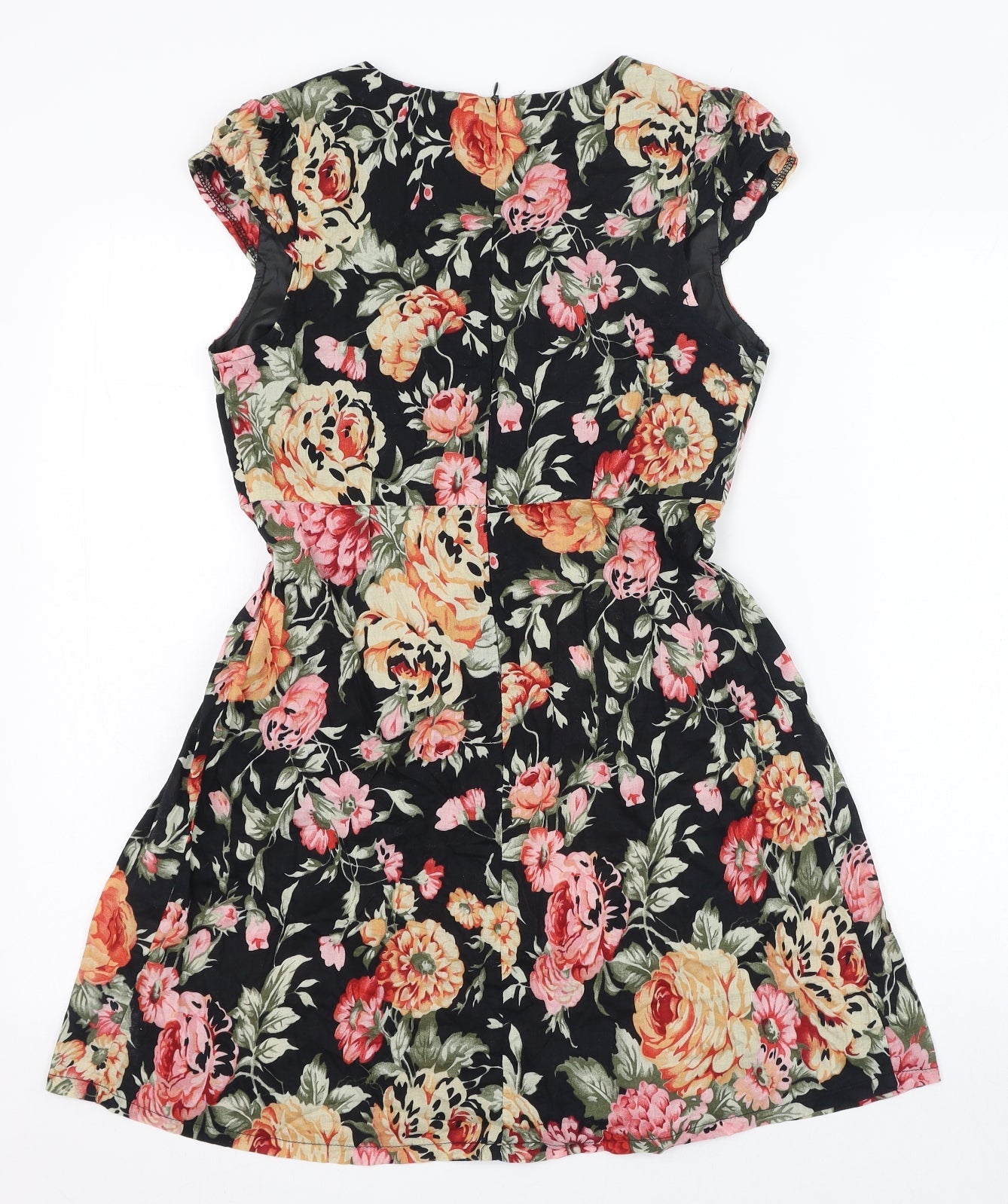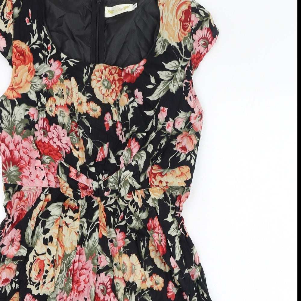 Angel Eye Womens Black Fair Isle Cotton Skater Dress Size S Round Neck Zip