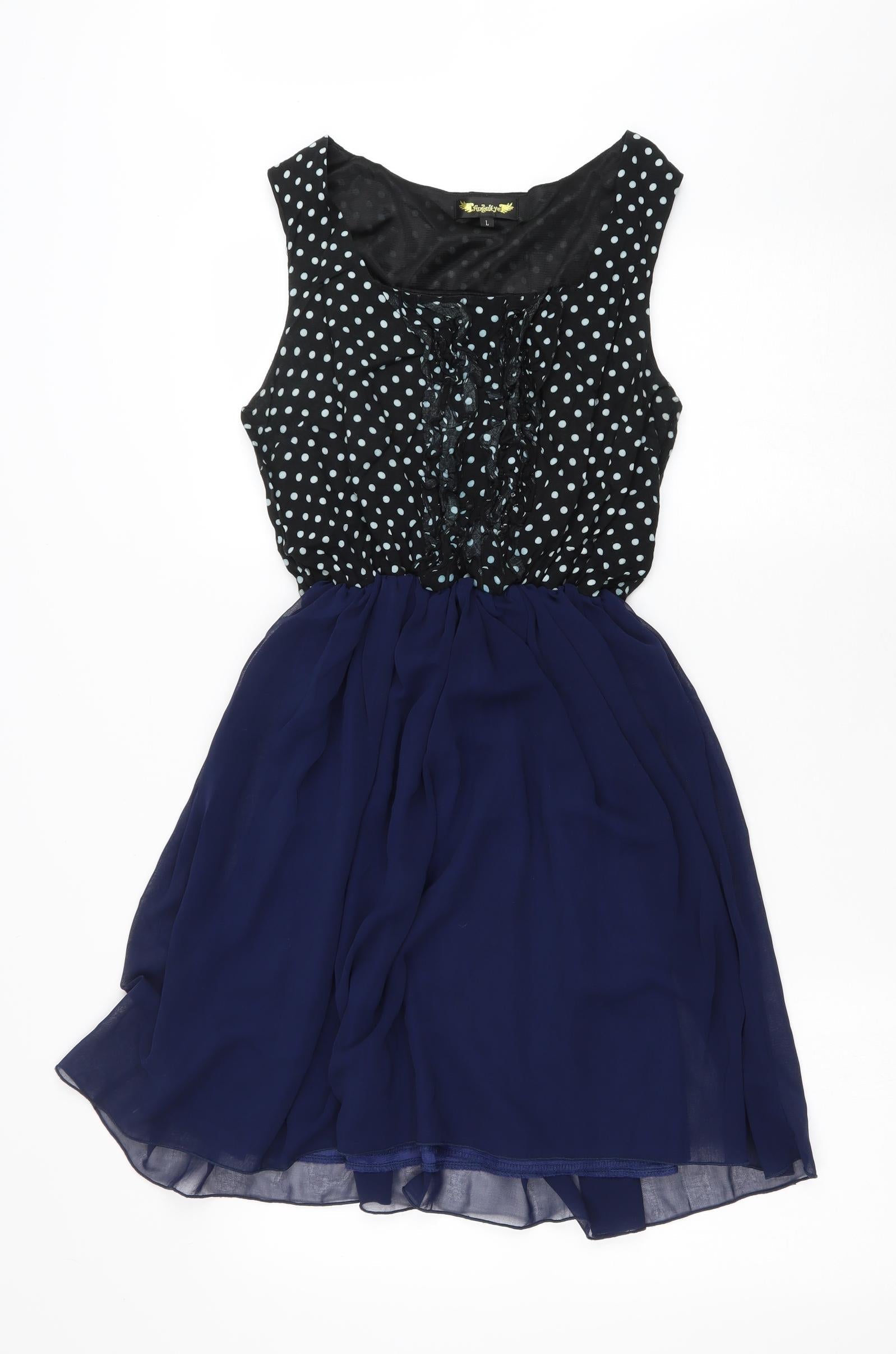 Angel Eye Womens Blue Polka Dot Polyester Fit & Flare Size L Scoop Neck