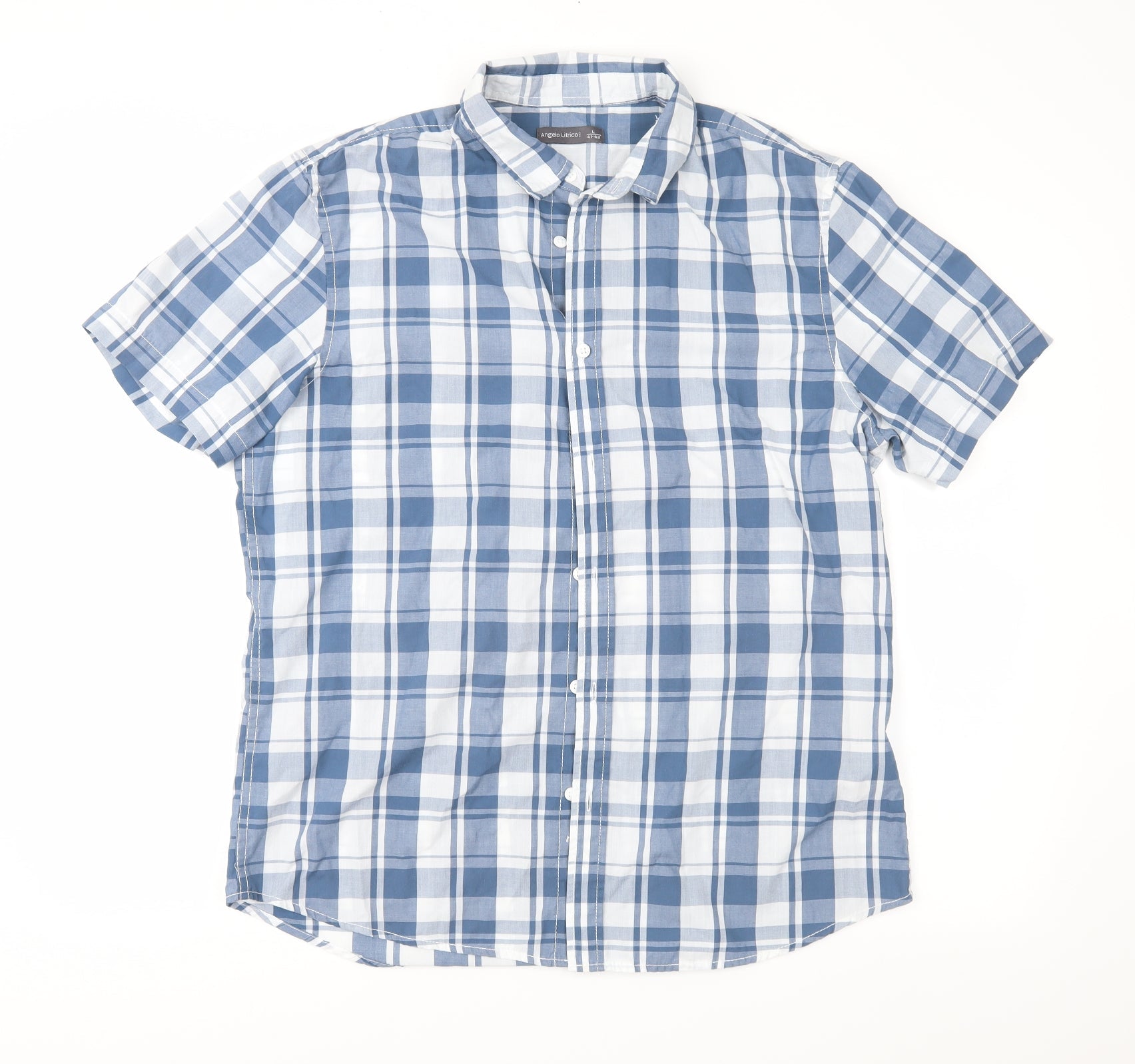 Angelo Litrico Mens Blue Check Button-Up Size L