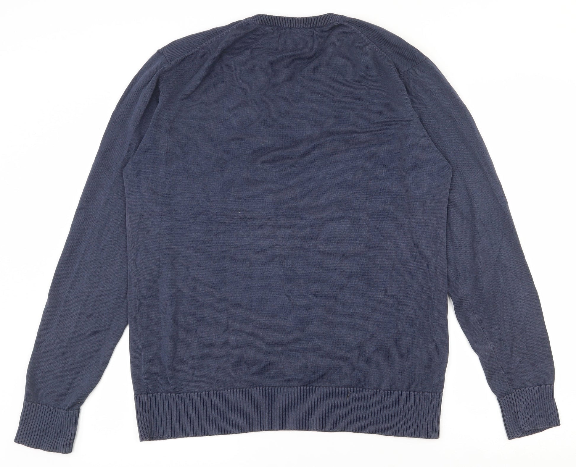 Angelo Litrico Mens Blue V-Neck Cotton Pullover Jumper Size L