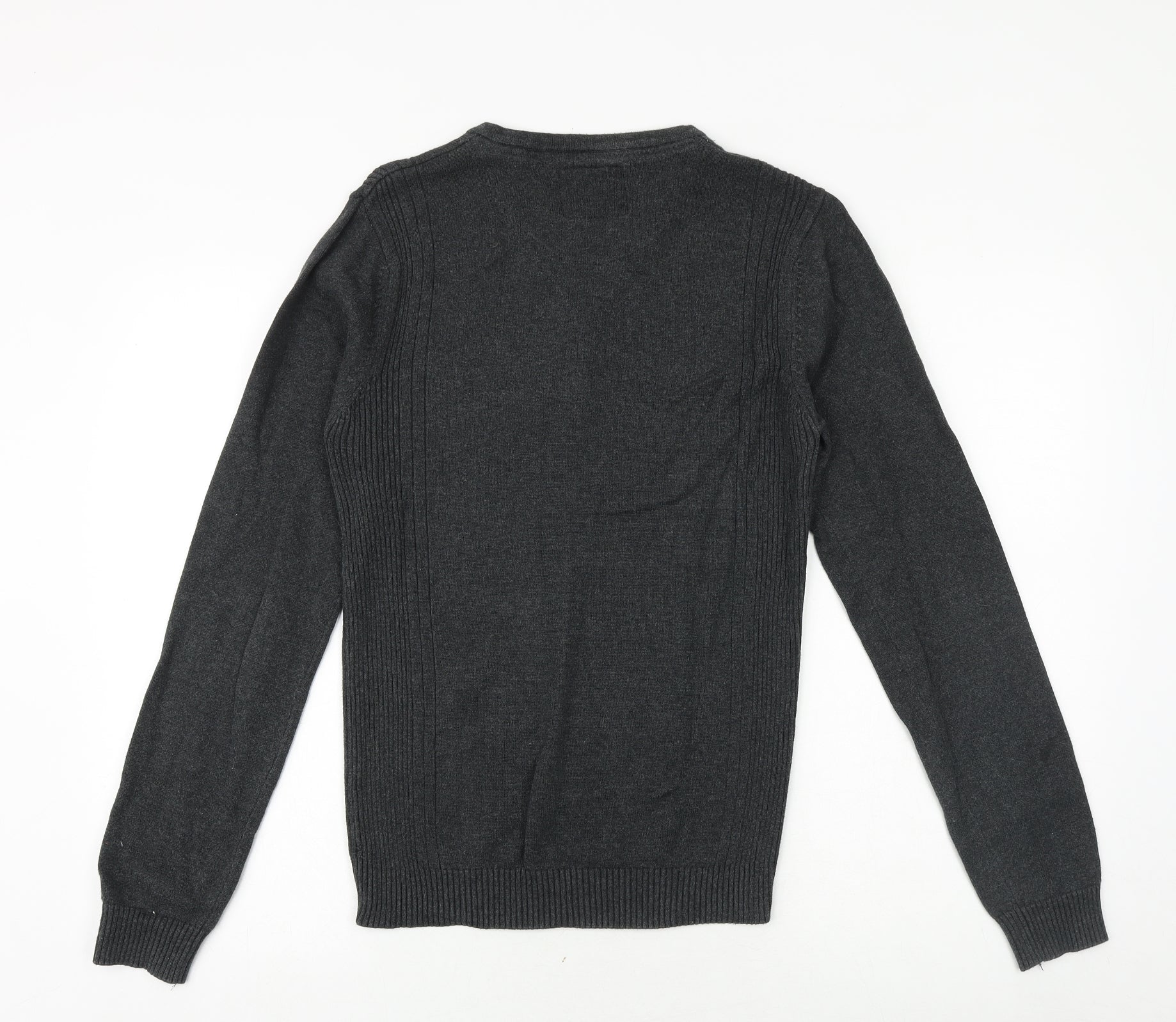 Angelo Litrico Mens Silver V-Neck Polyester Pullover Jumper Size S Long Sleeve