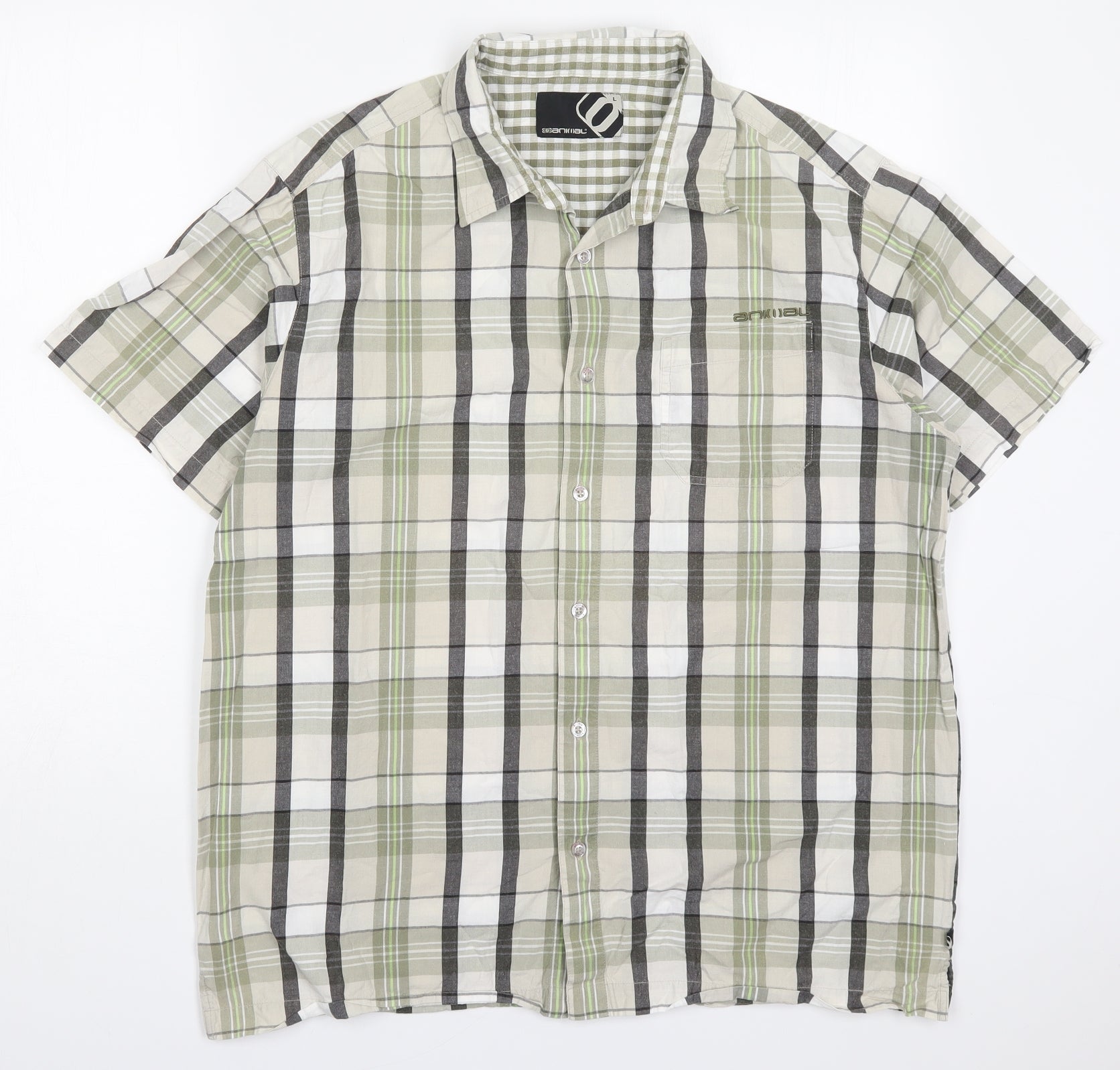 Animal Mens Green Check Cotton Button-Up Size L Collared Button