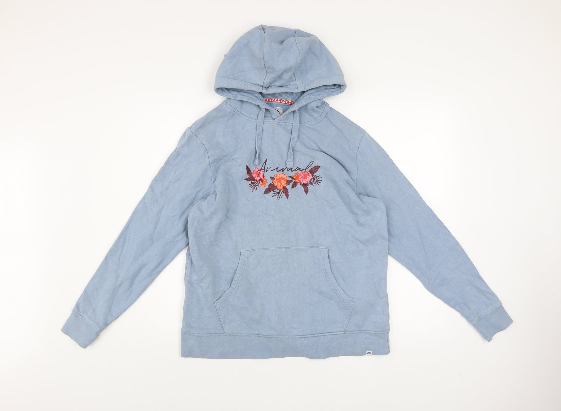 Animal Womens Blue Pullover Hoodie UK 12 Organic Cotton Floral Logo