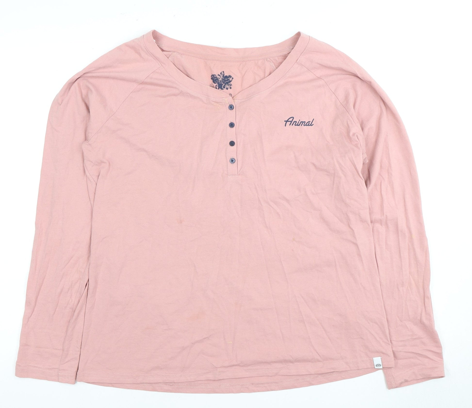 Animal Women's Pink Cotton Henley Button-Up Top Size 14