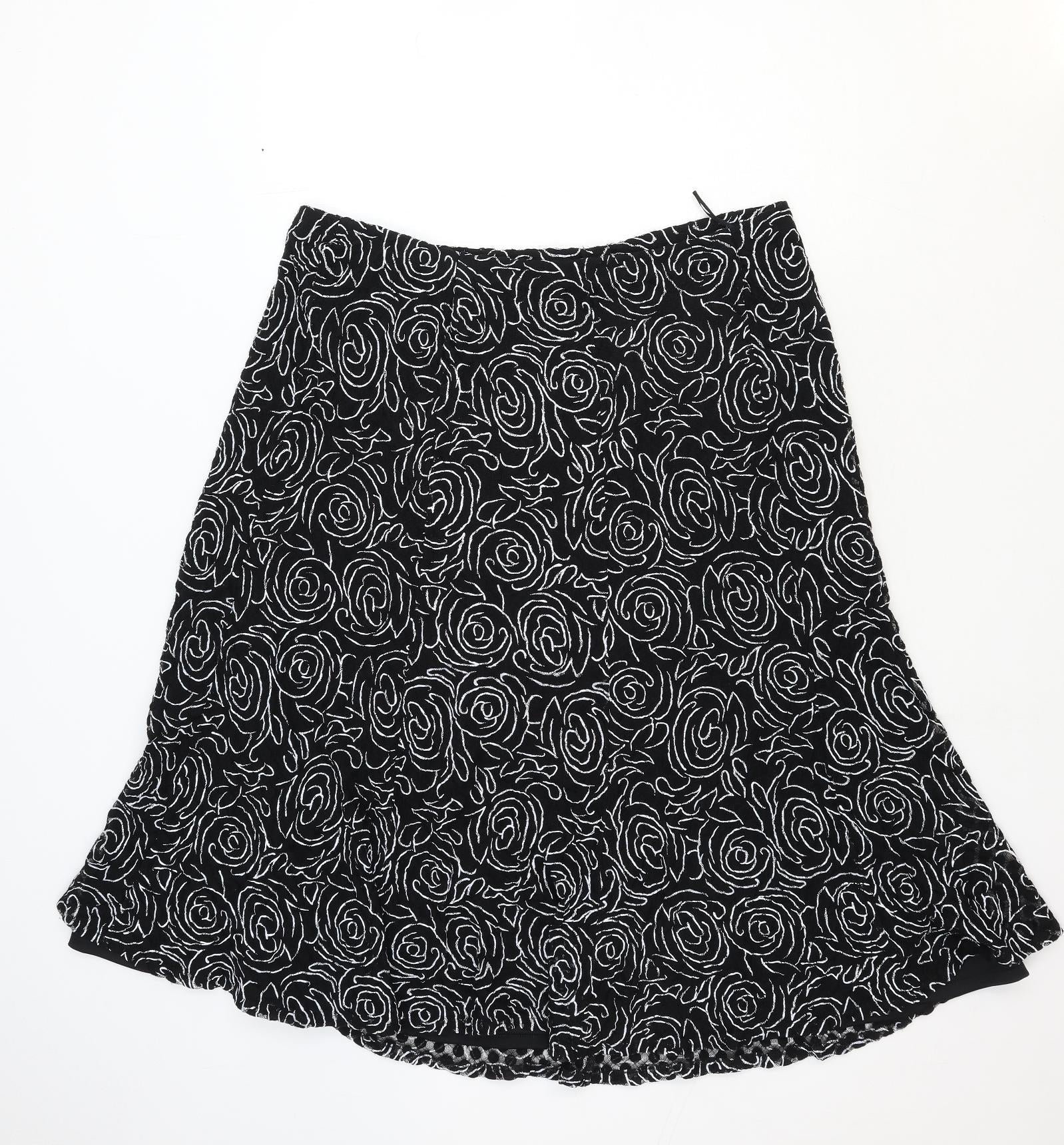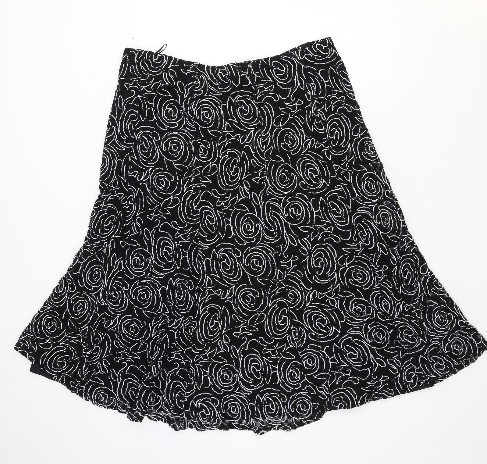 Ann Harvey Womens Black Floral Nylon Swing Skirt Size L
