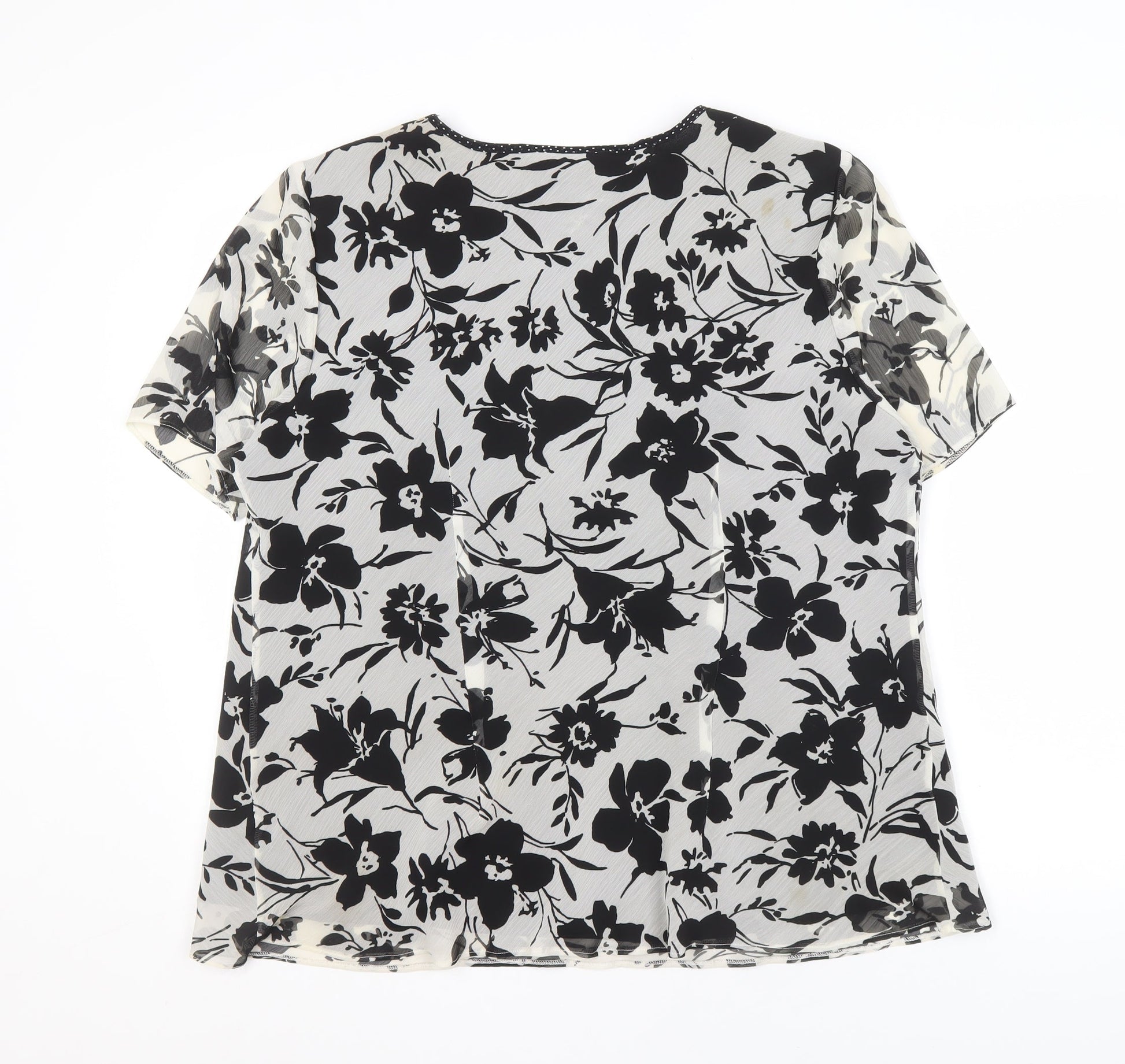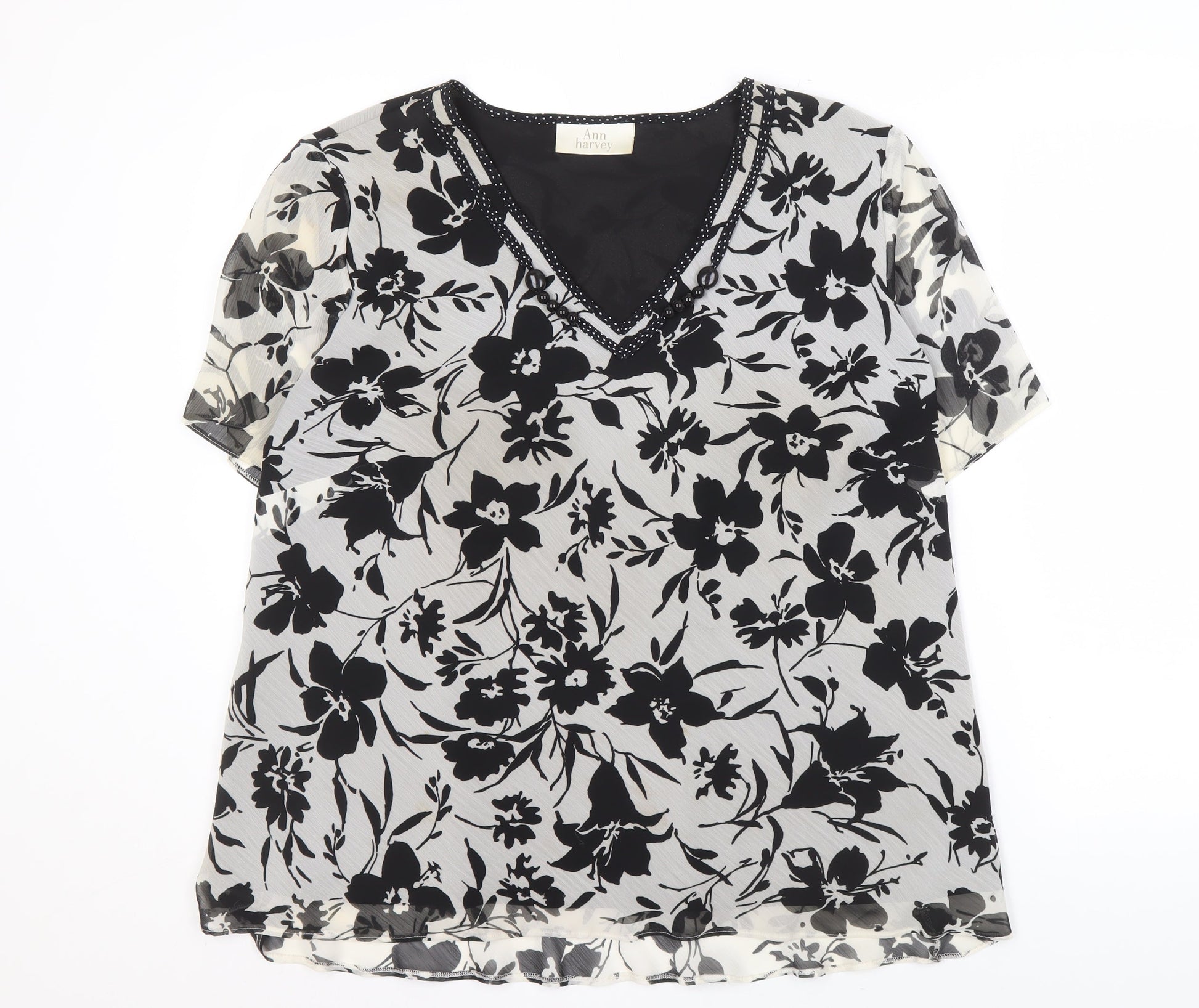 Ann Harvey Women's Black Floral Viscose Blouse, Size 16