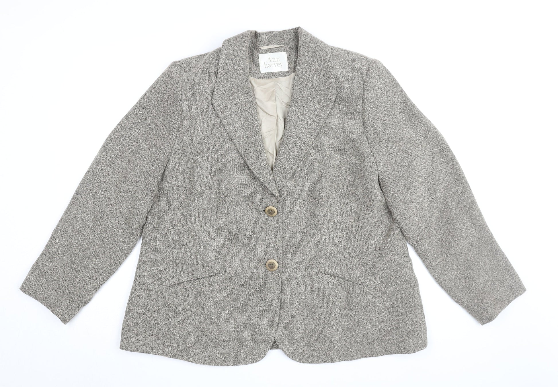Ann Harvey Women's Grey Blazer Size 16 Two-Button
