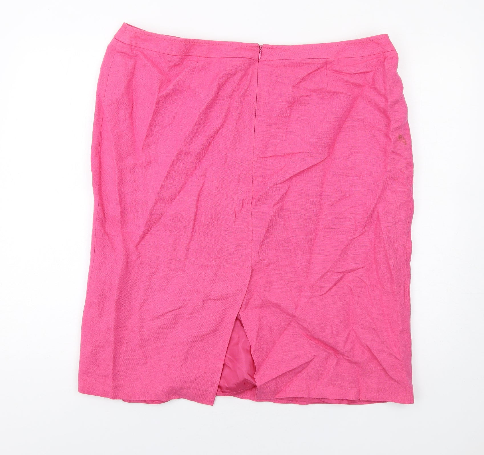 Ann Harvey Womens Pink Linen A-Line Skirt Size 18 Zip