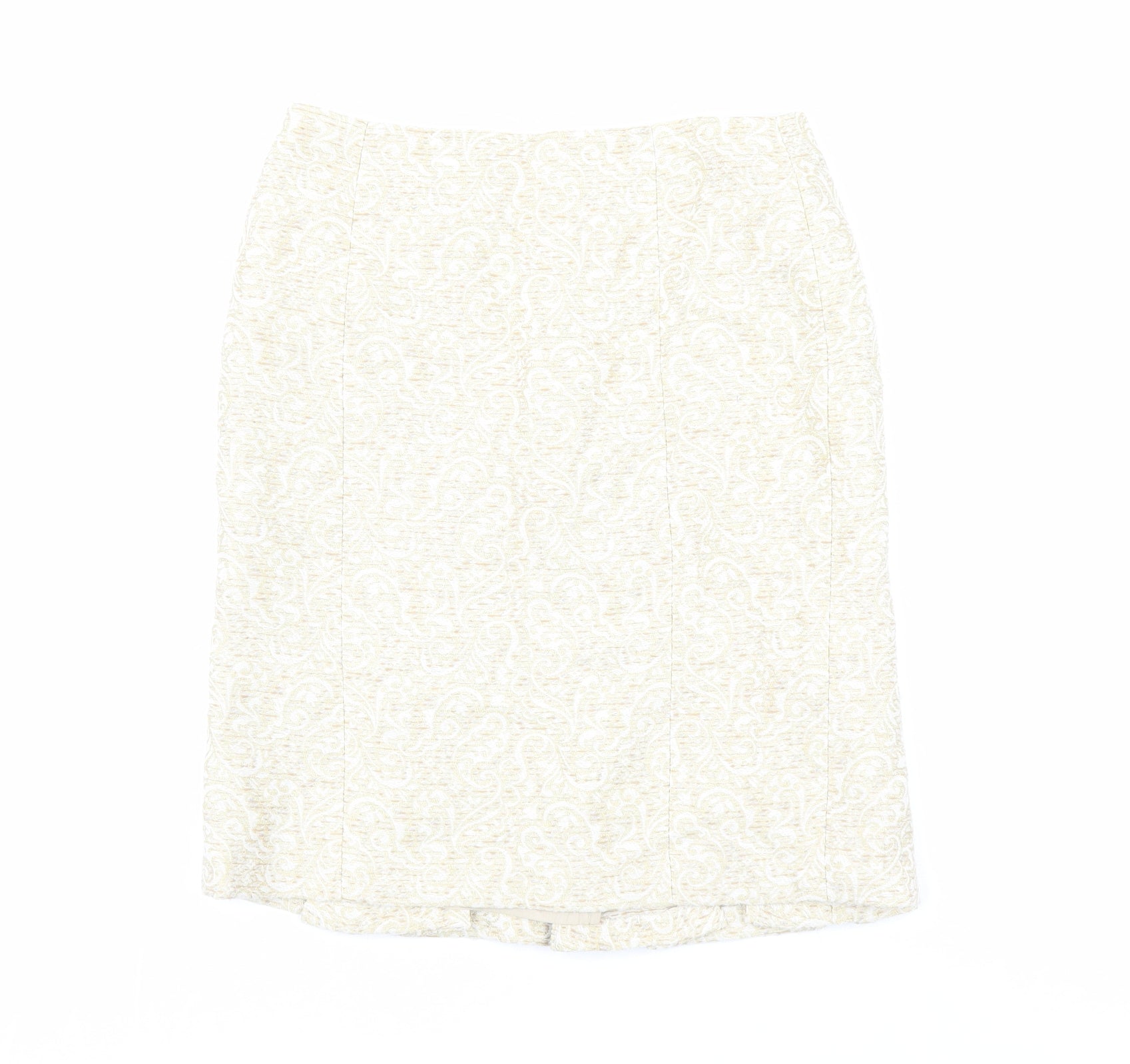 Ann Taylor Womens Beige Geometric Cotton Straight & Pencil Skirt Size 4 Zip