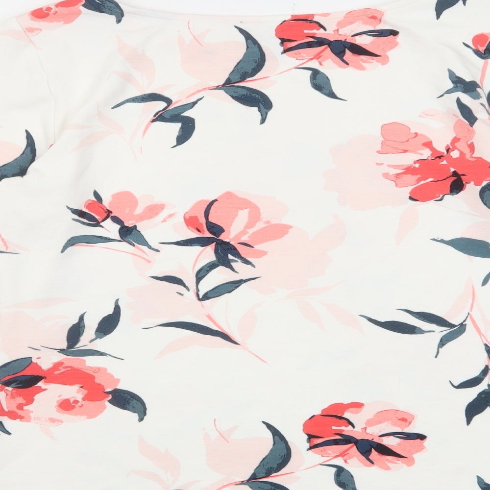 Ann Taylor Womens White Floral Polyester Basic Blouse Size S Round Neck