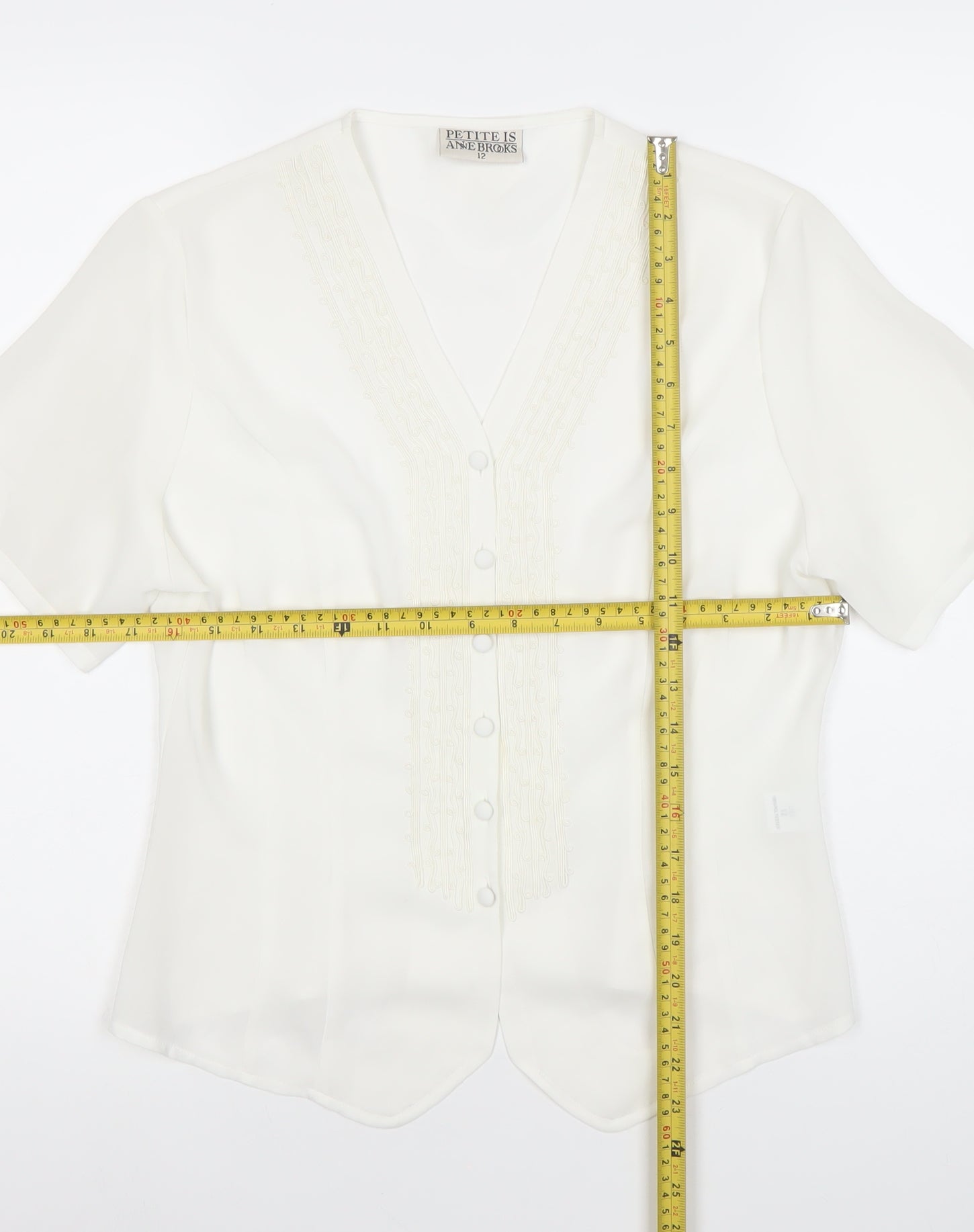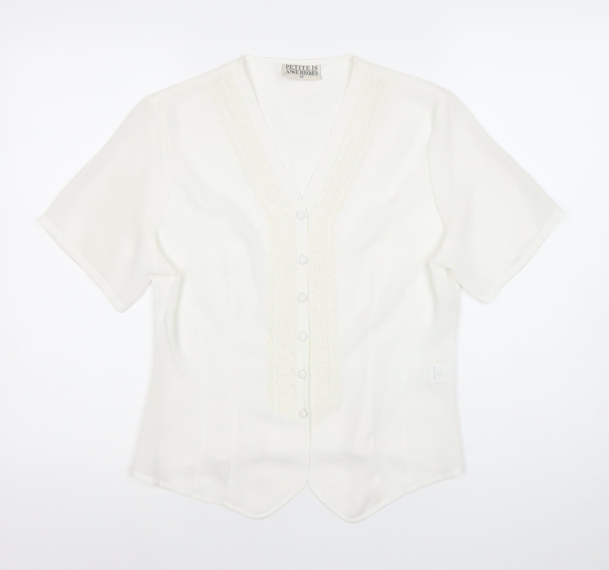 Anne Brooks Petite Womens Ivory Blouse Size 12 Short Sleeve V-Neck