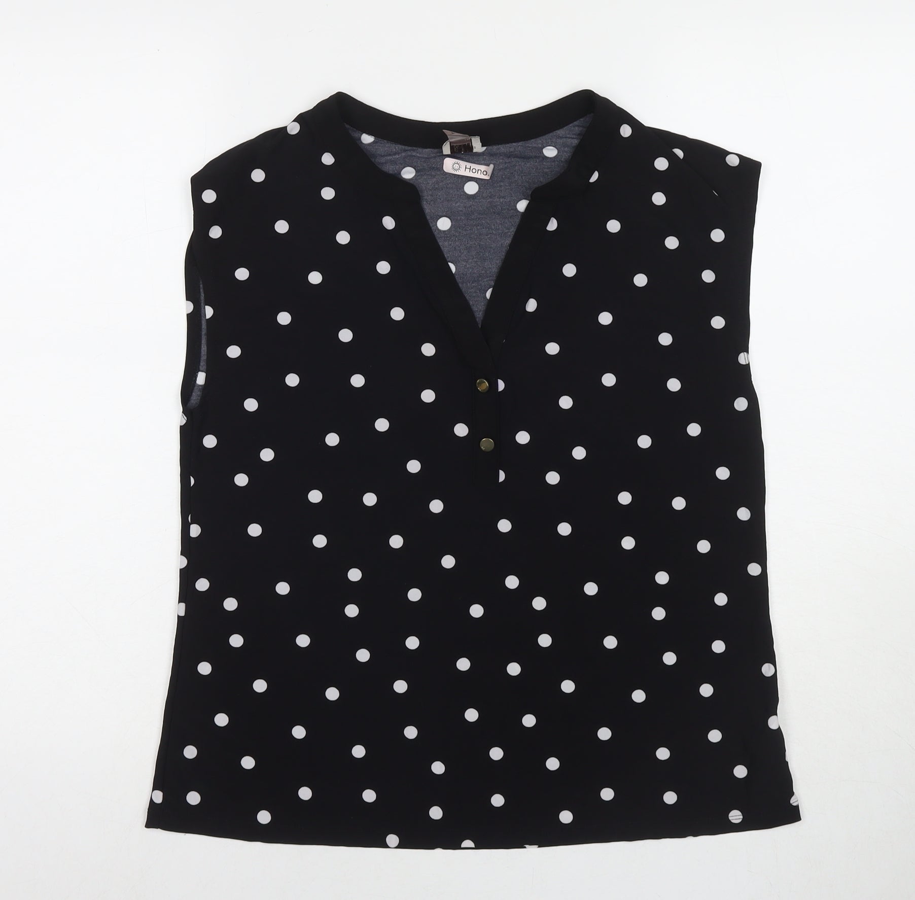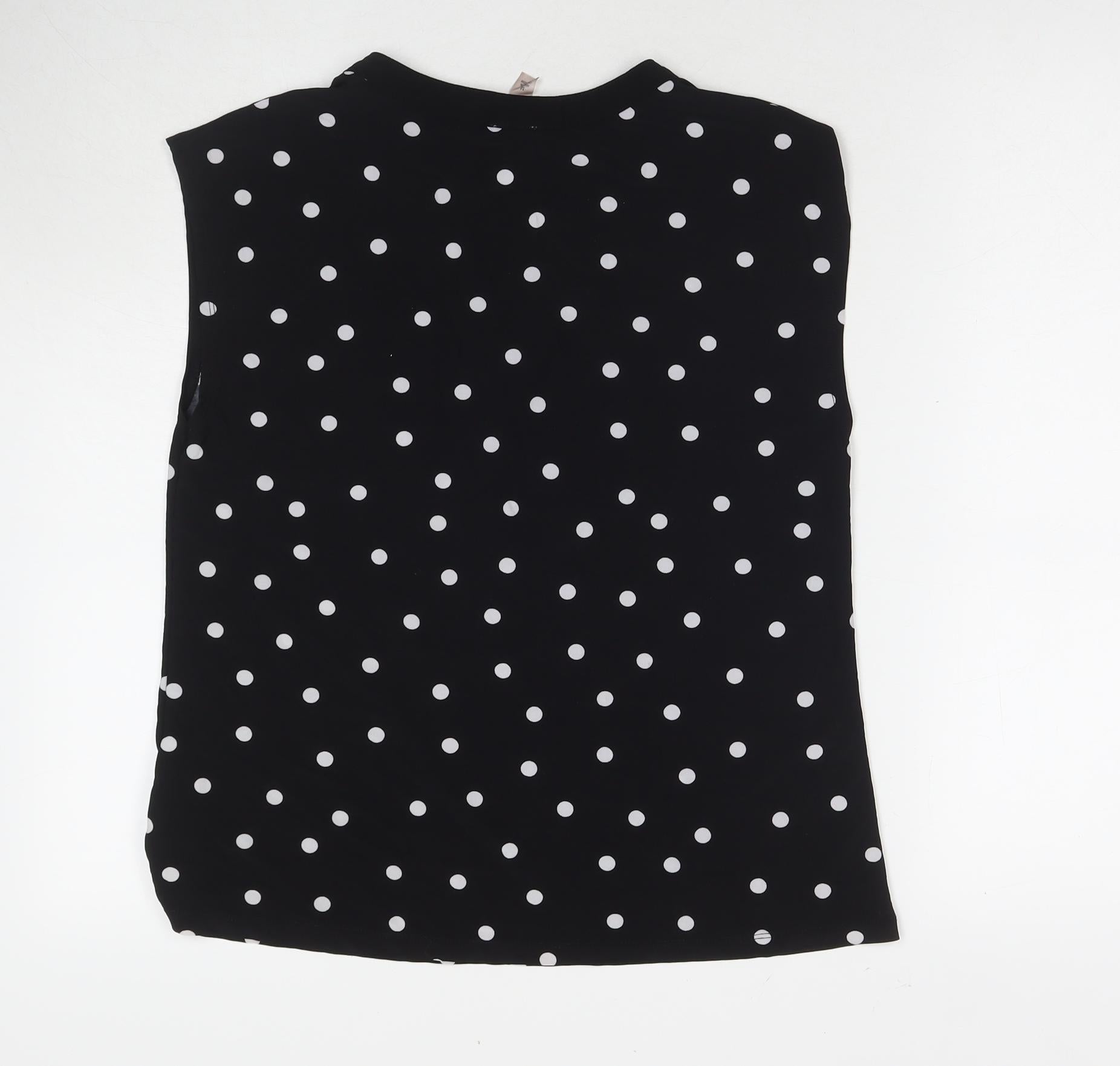 Anne Klein Womens Black Polka Dot Polyester Basic Blouse Size M V-Neck
