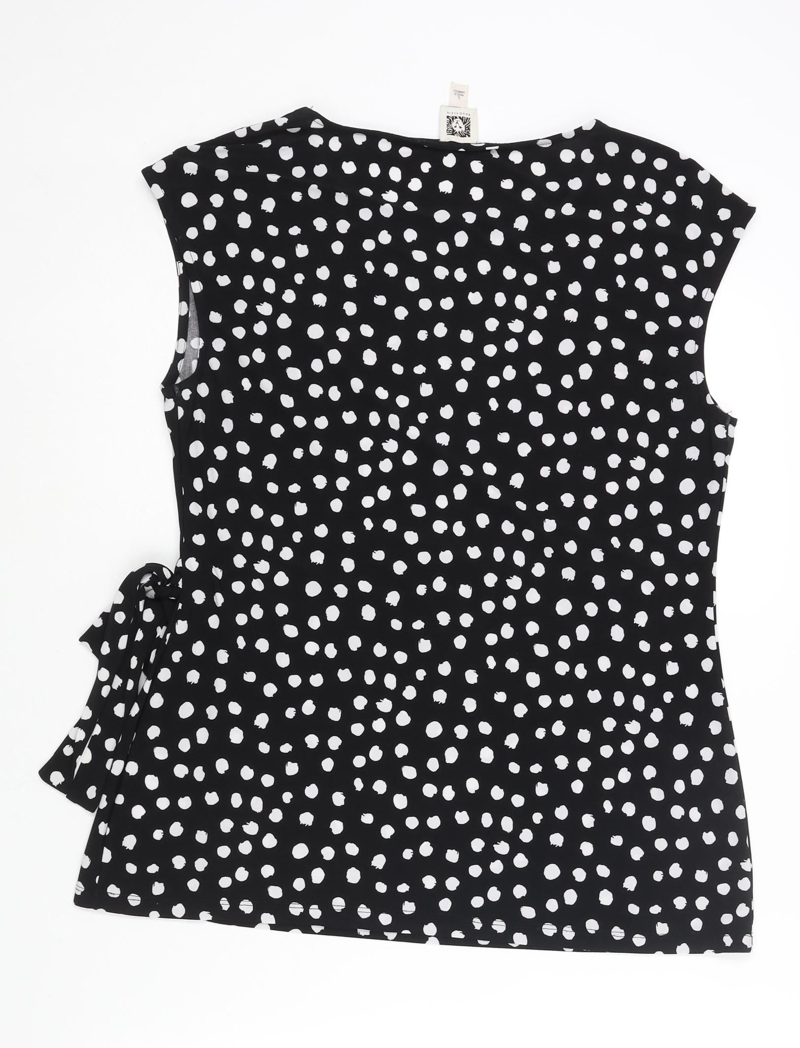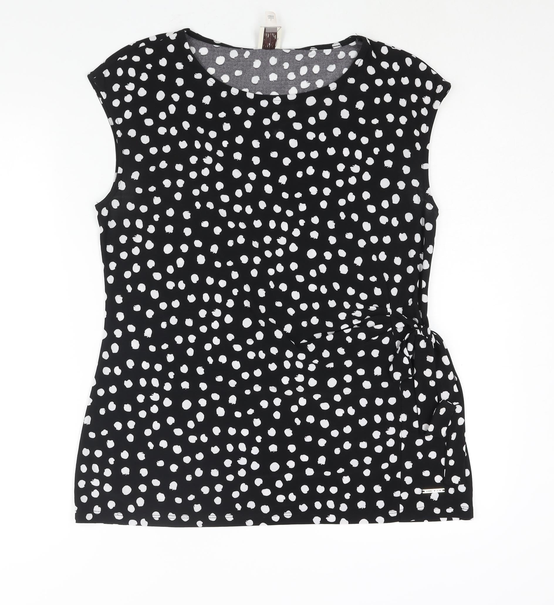 Anne Klein Womens Black Polka Dot Polyester Camisole Blouse Size L Round Neck - Logo Tie Detail