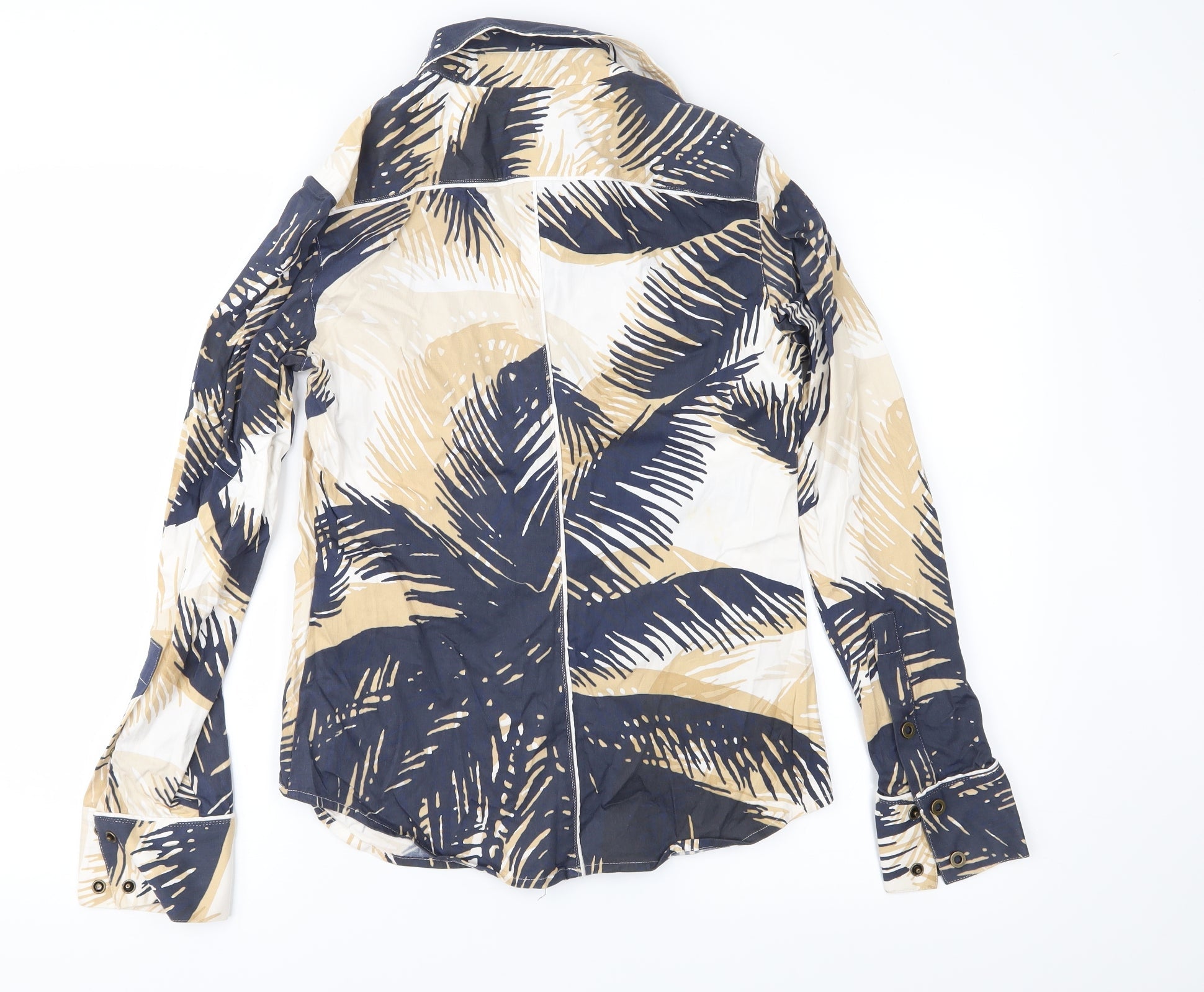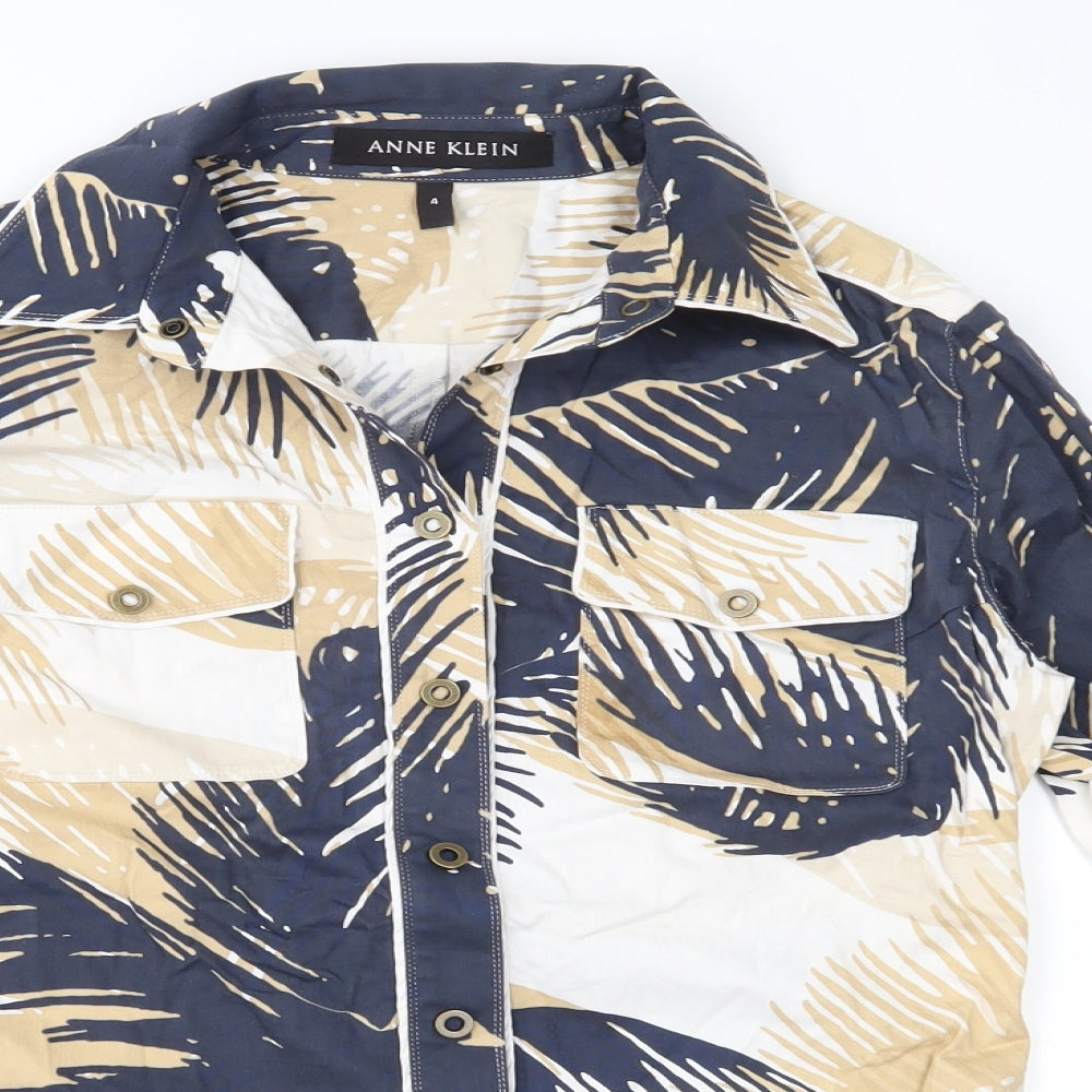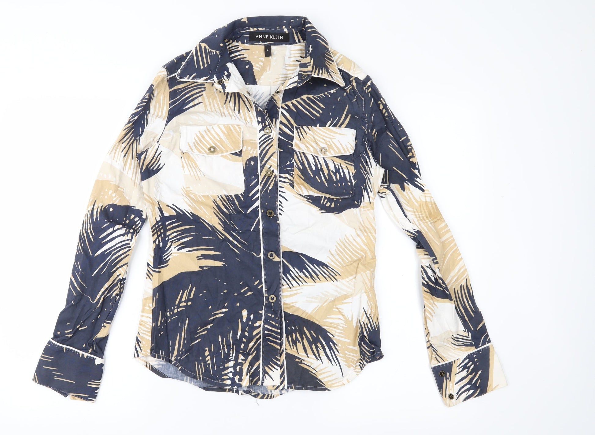 Anne Klein Womens Blue Floral Basic Button-Up Size 4