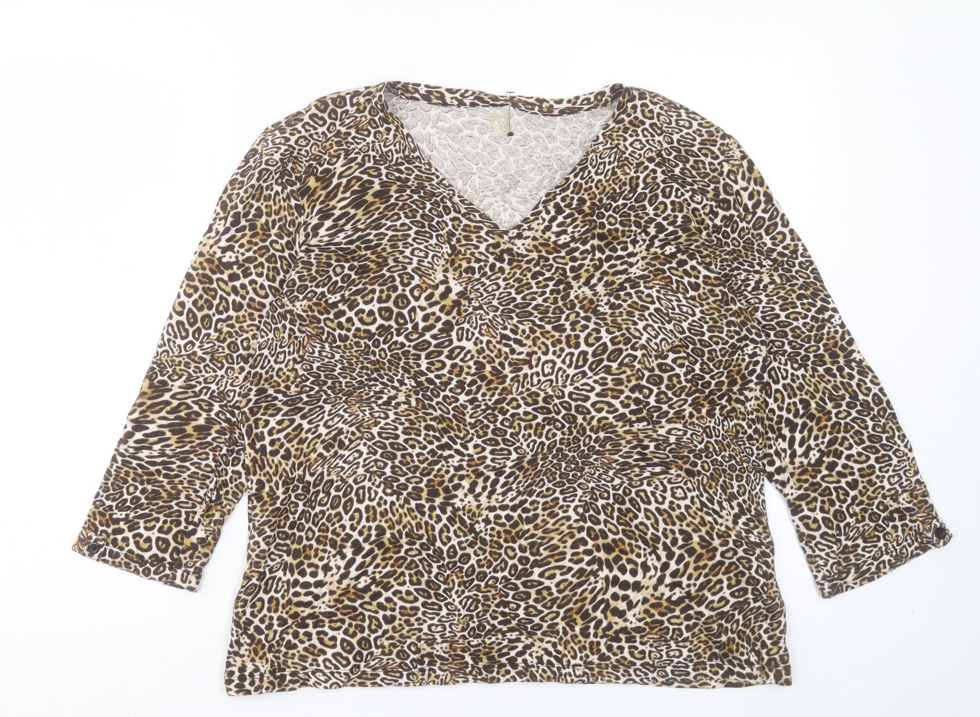 Anne Klein Womens Brown Animal Print Polyester Basic T-Shirt Size L V-Neck