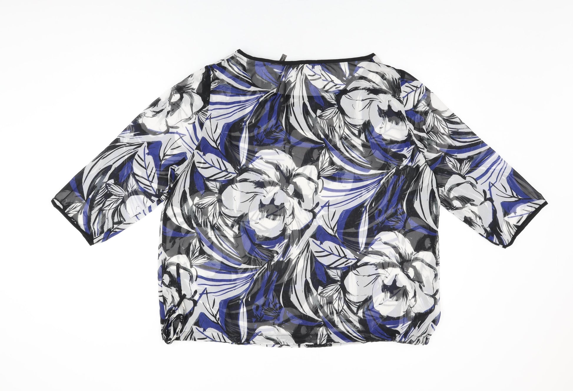 Anthology Womens Blue Floral Polyester Basic Blouse Size 16 Round Neck