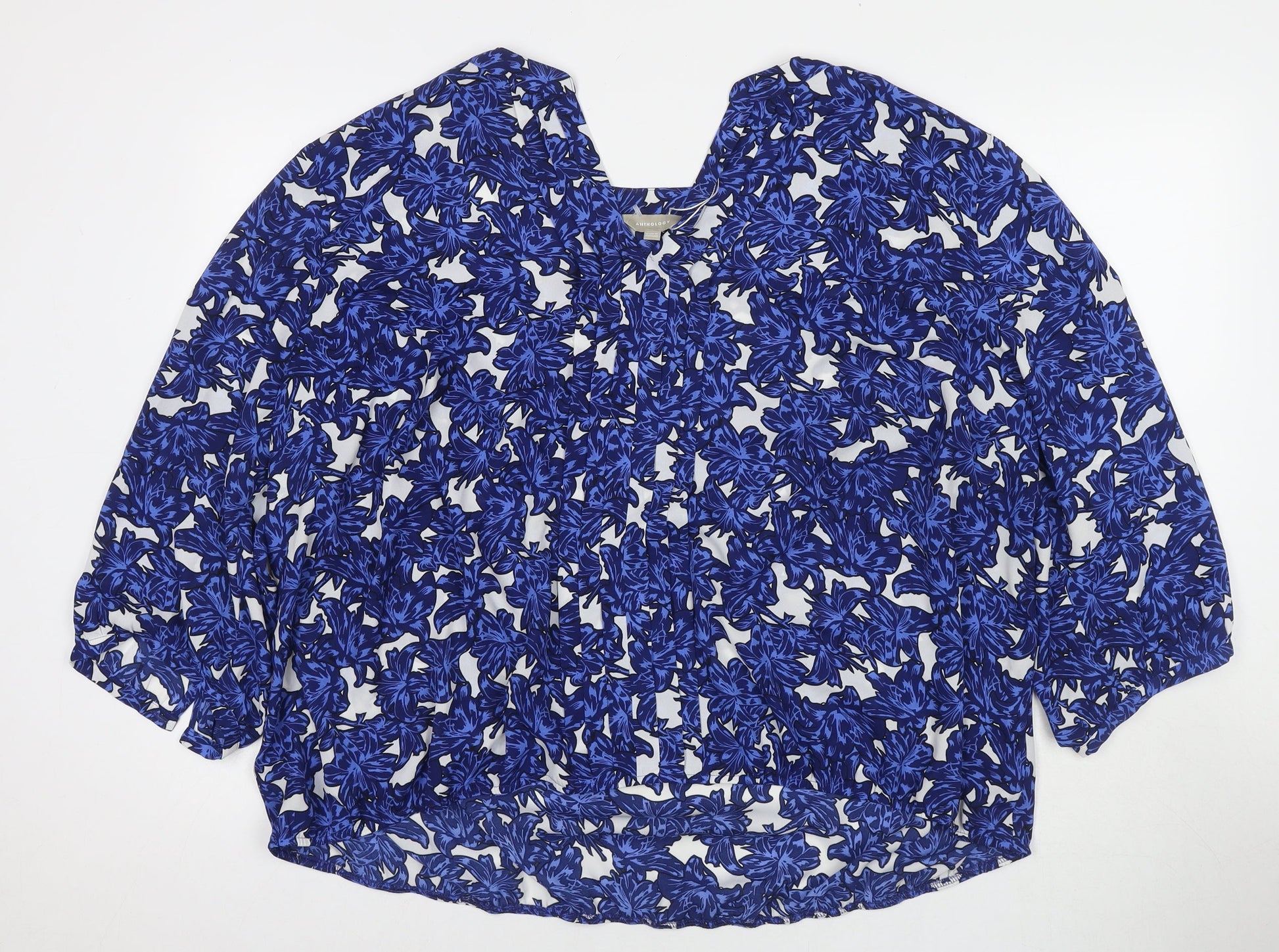 Anthology Womens Blue Geometric Polyester Basic Blouse Size 30 V-Neck
