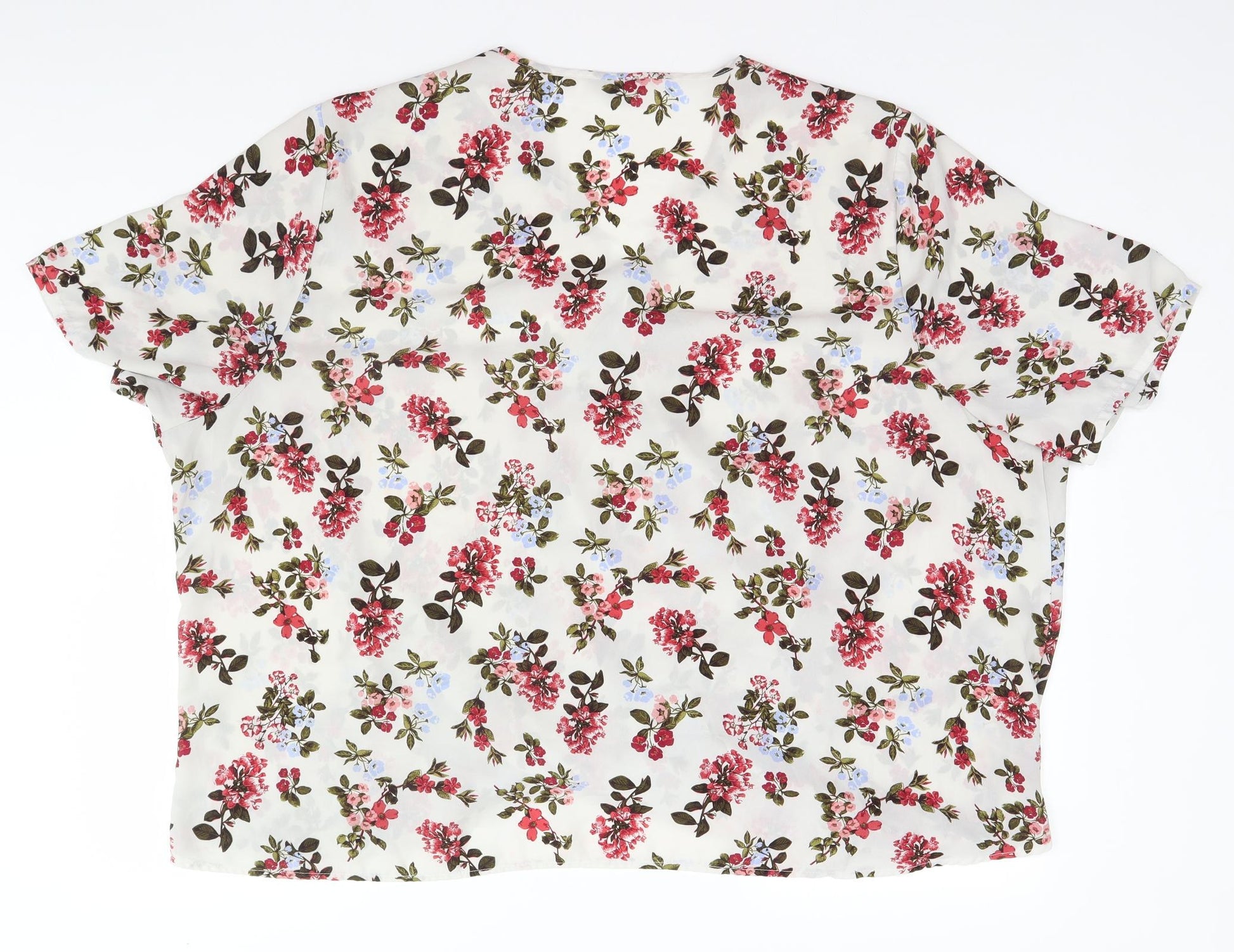 Anthology Womens Grey Floral Basic Blouse V-Neck