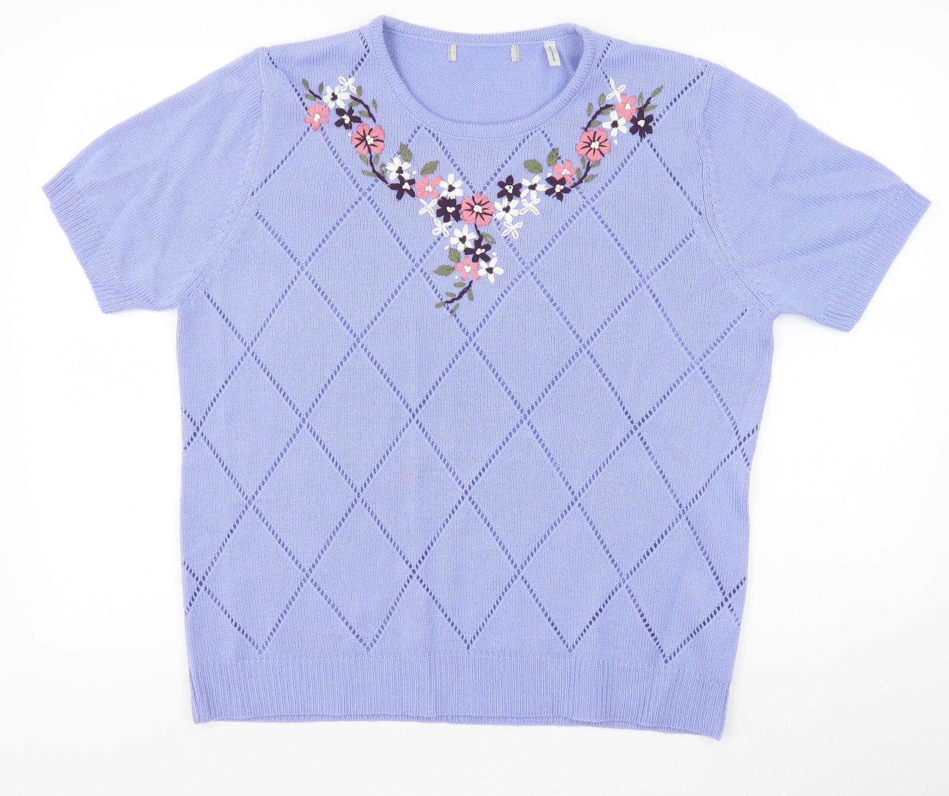 Anthology Womens Purple Crew Neck Argyle/Diamond Acrylic Pullover Jumper Size 16 Pullover