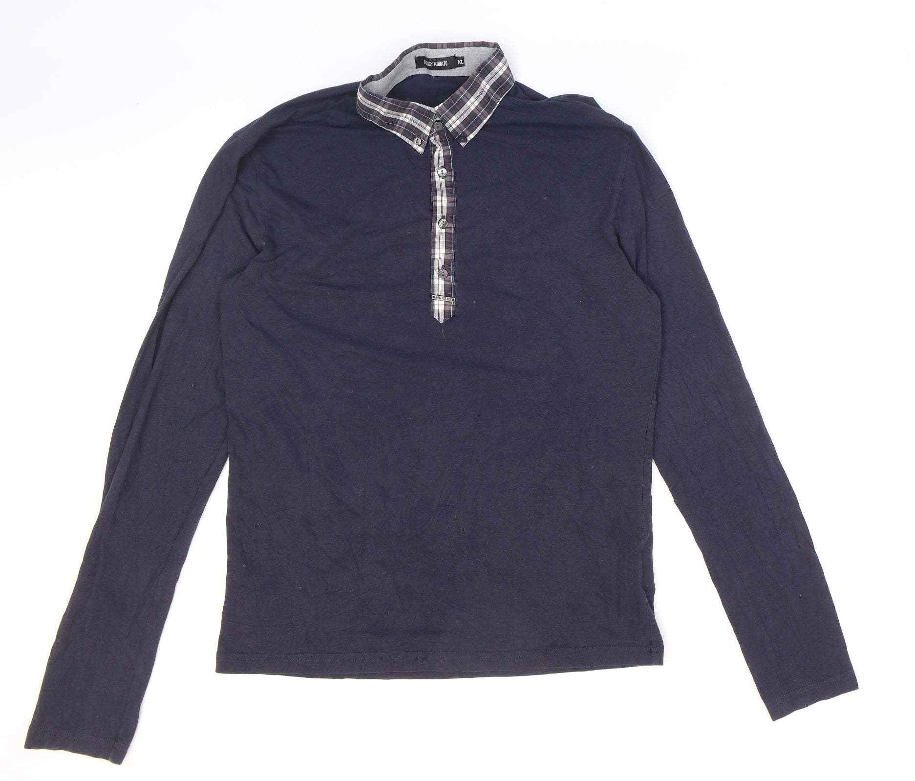 Antony Morato Mens Blue Plaid Cotton Button-Up Size XL Collared Button