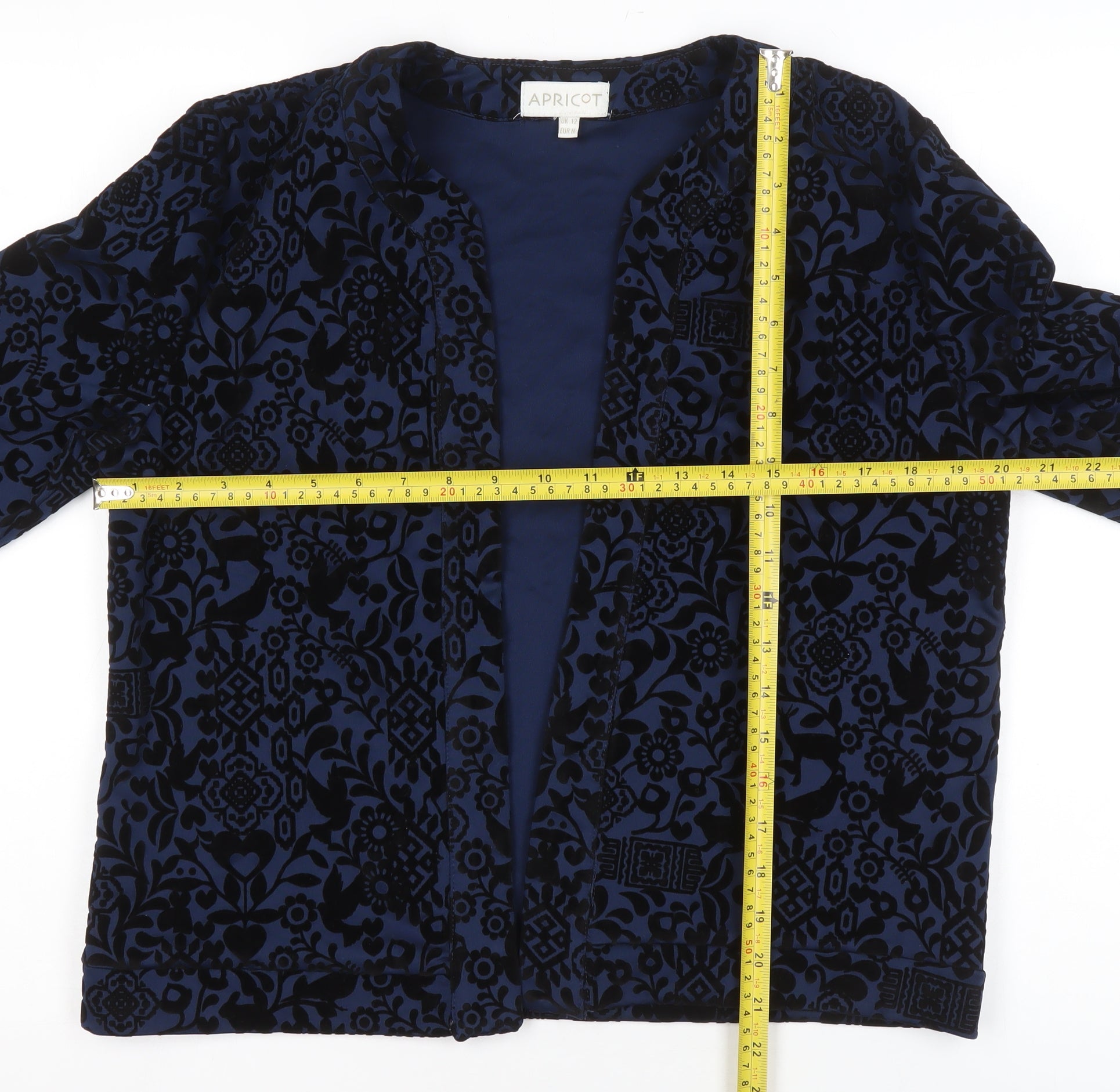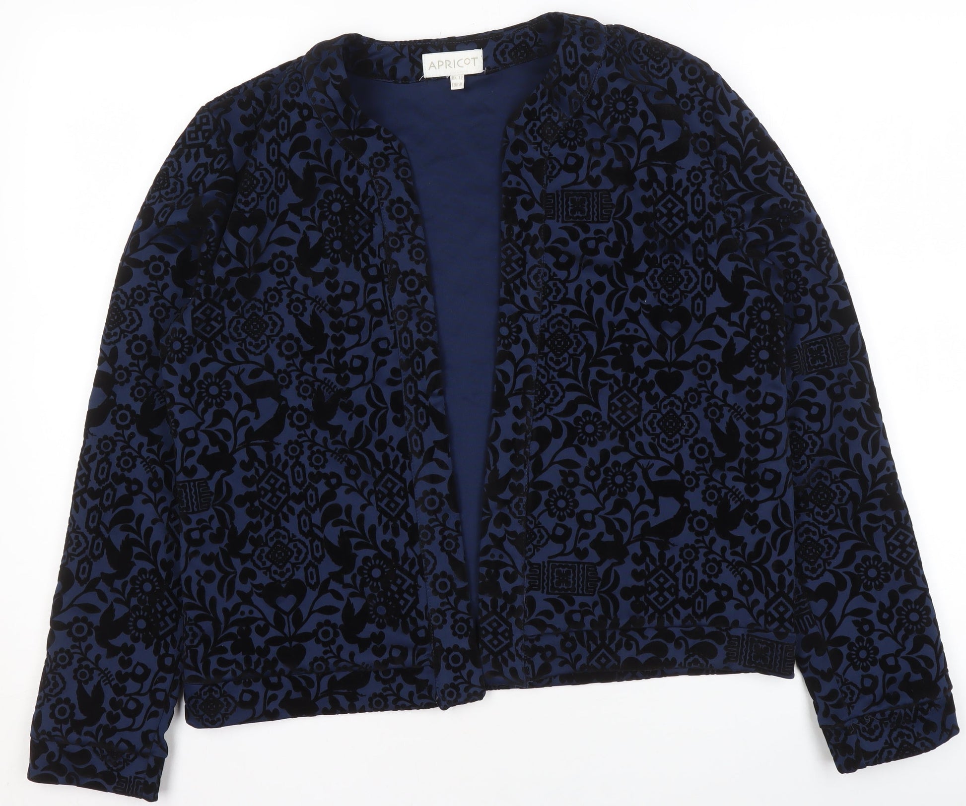 Apricot Womens Blue Velvet Floral Open Jacket Size 12
