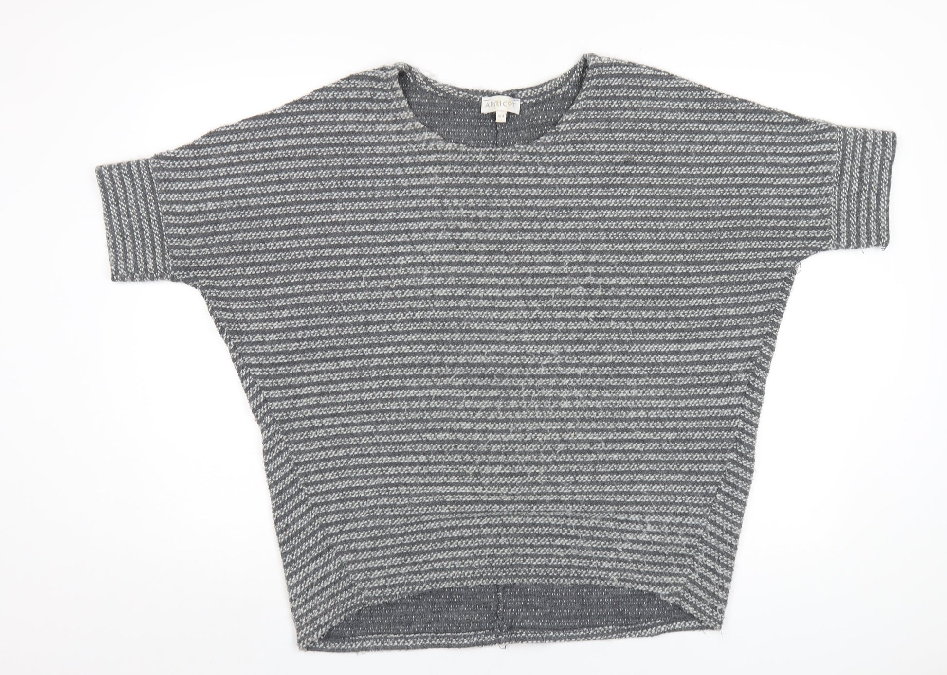 Apricot Womens Grey Round Neck Striped Acrylic Pullover Jumper Size S