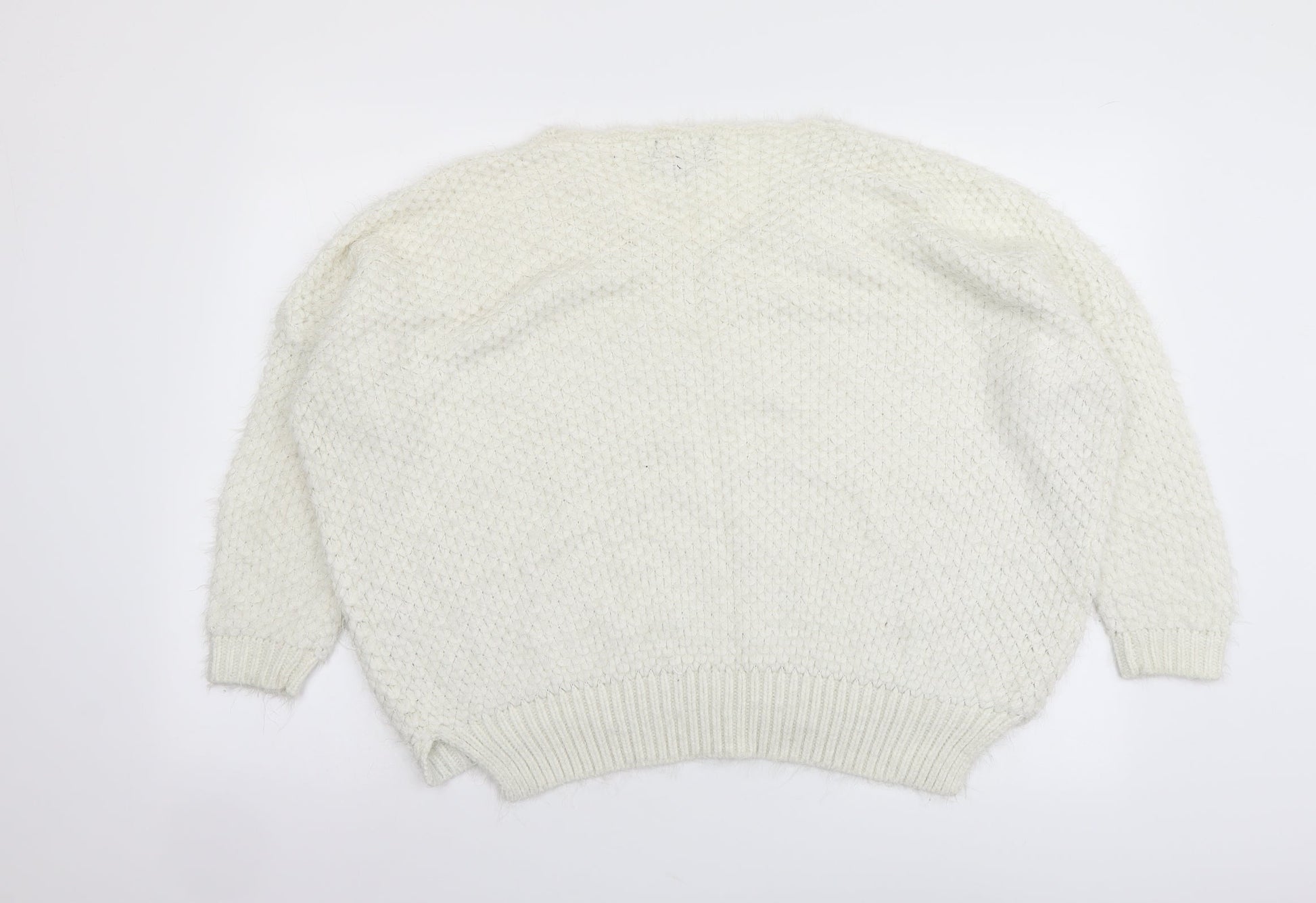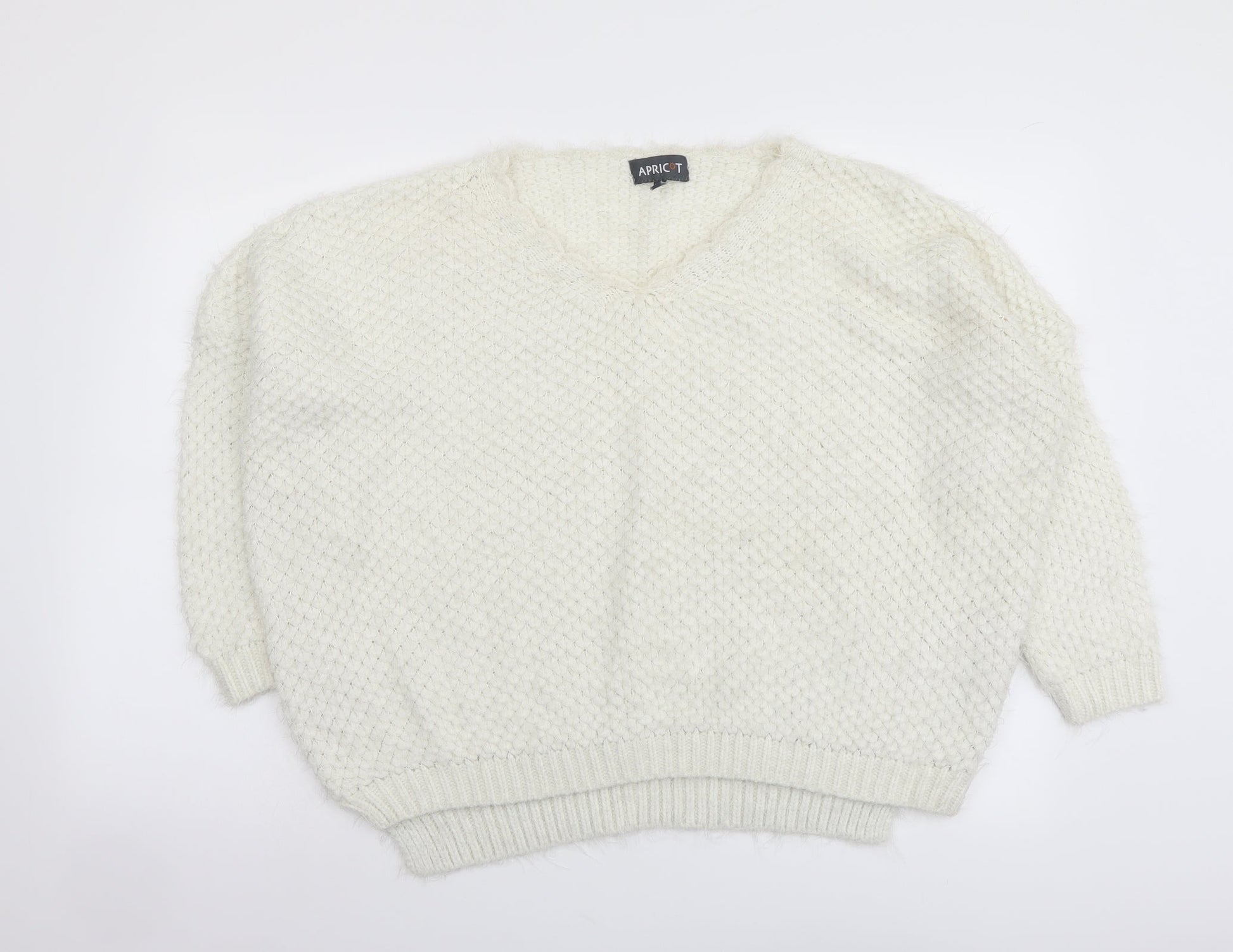 Apricot Womens Ivory V-Neck Acrylic Pullover Jumper Size 8