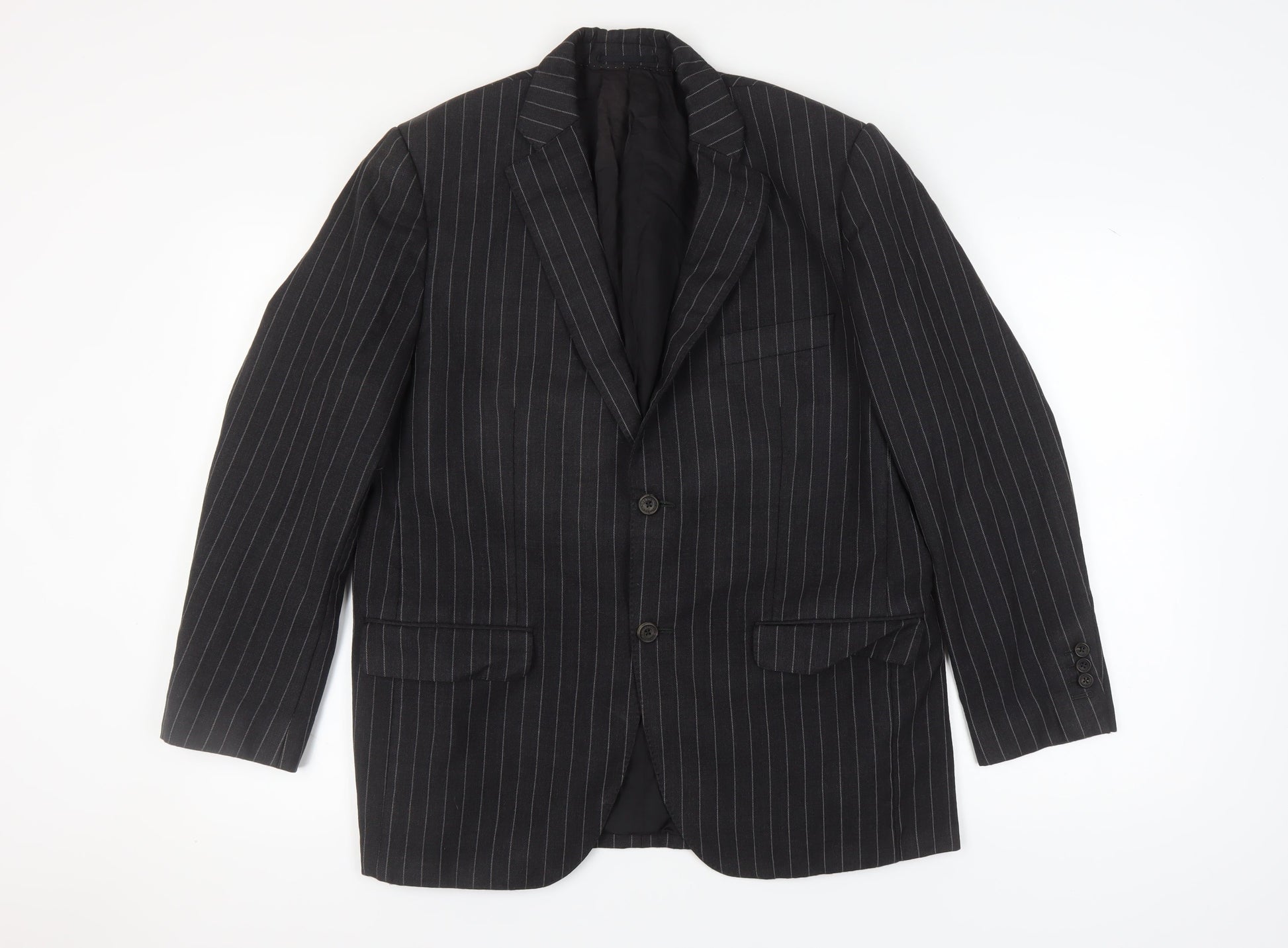 Aquascutum Men's Black Striped Blazer, Size 44, Wool