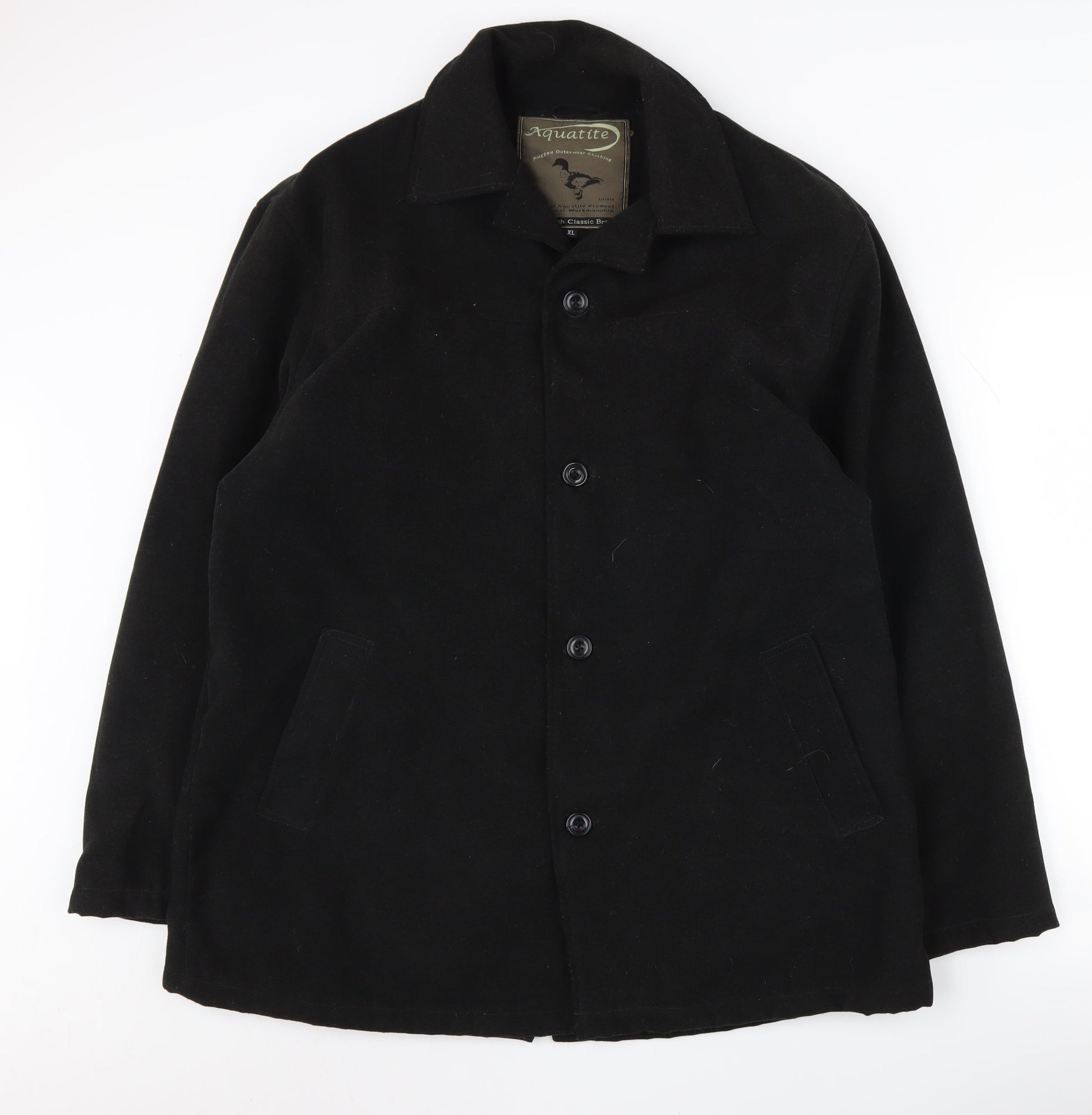 Aquatite Men's XL Black Mid-Length Coat - Lined, Classic Style