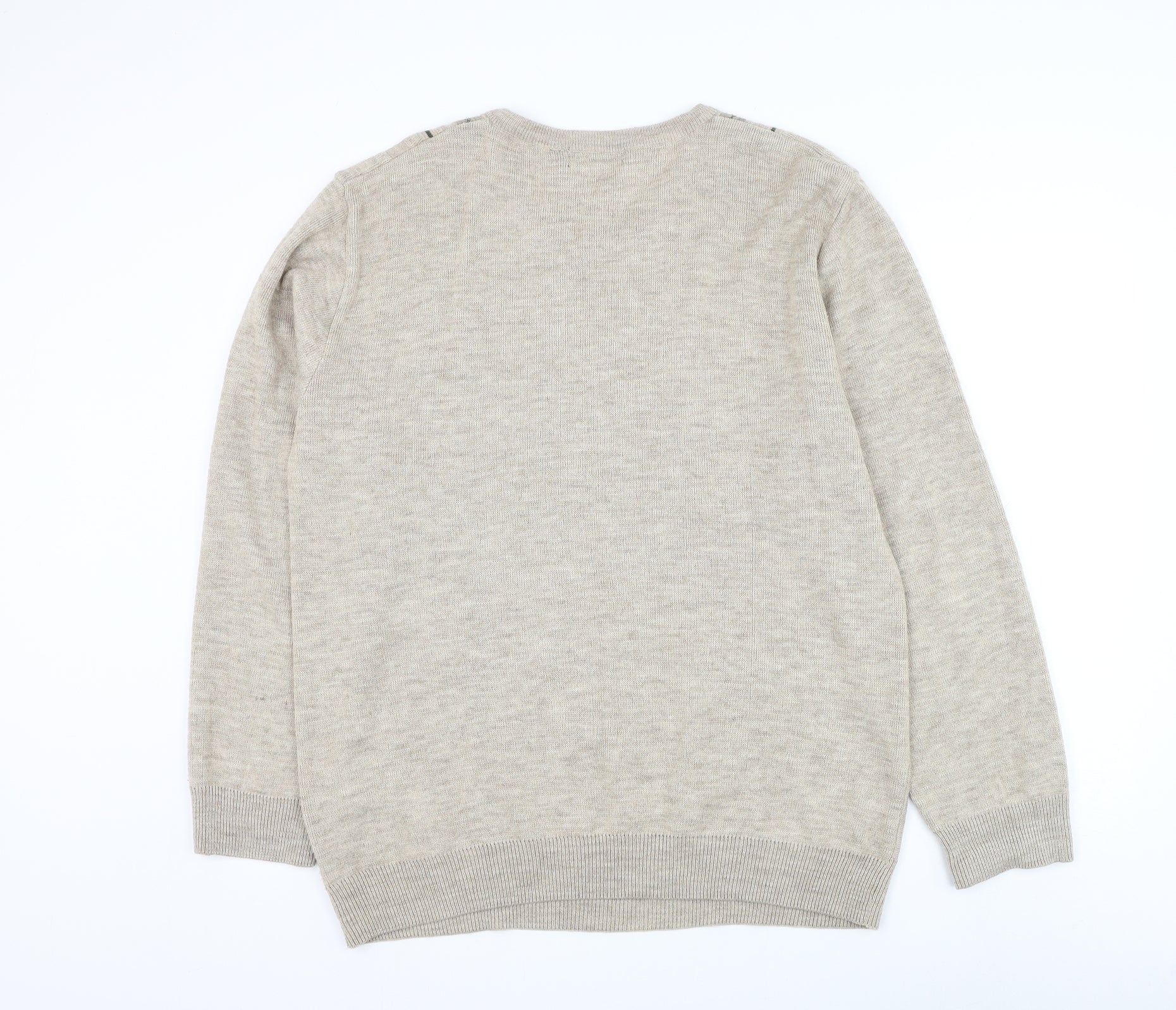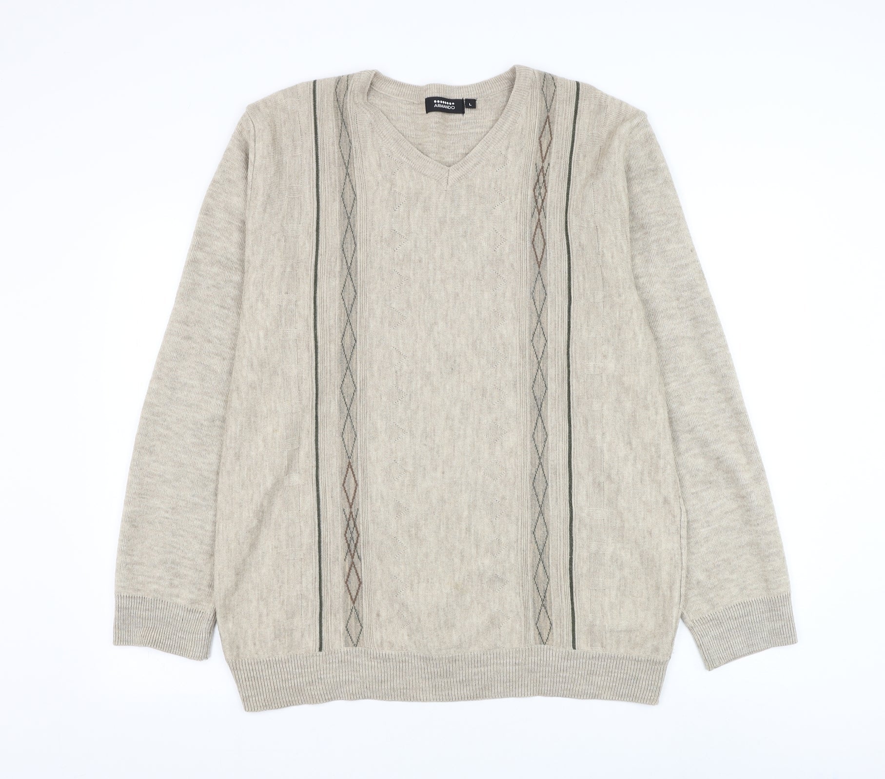 Armando Mens Brown V-Neck Geometric Acrylic Pullover Jumper Size L