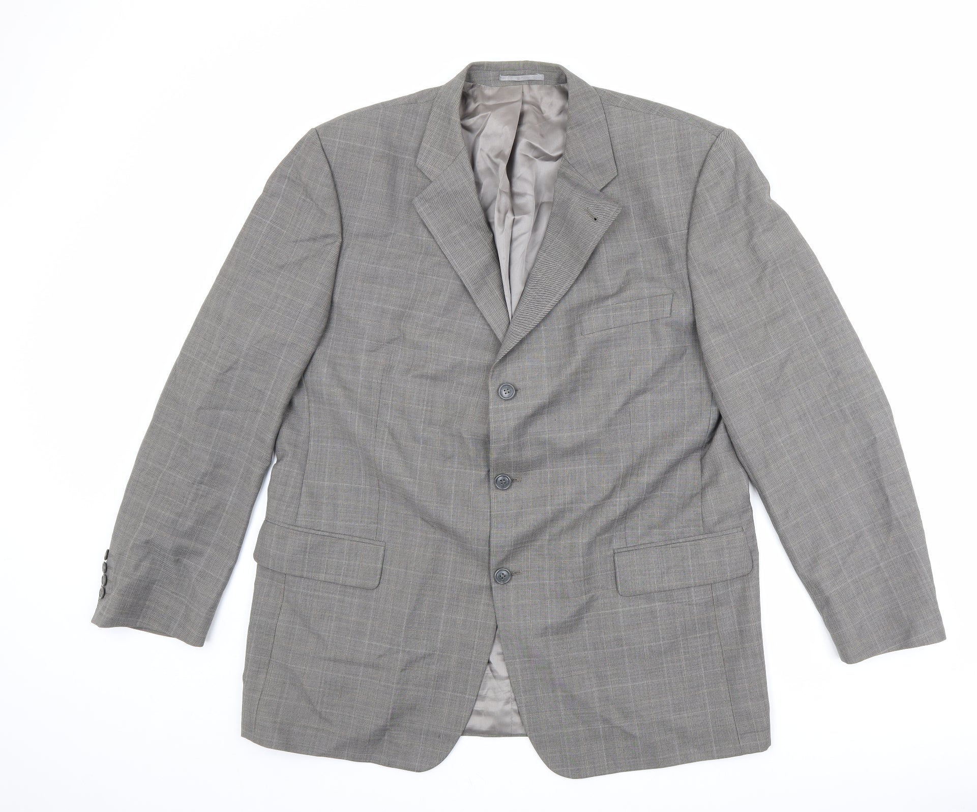 Armando Mens Grey Check Polyester Jacket Suit Jacket Size 46 Regular