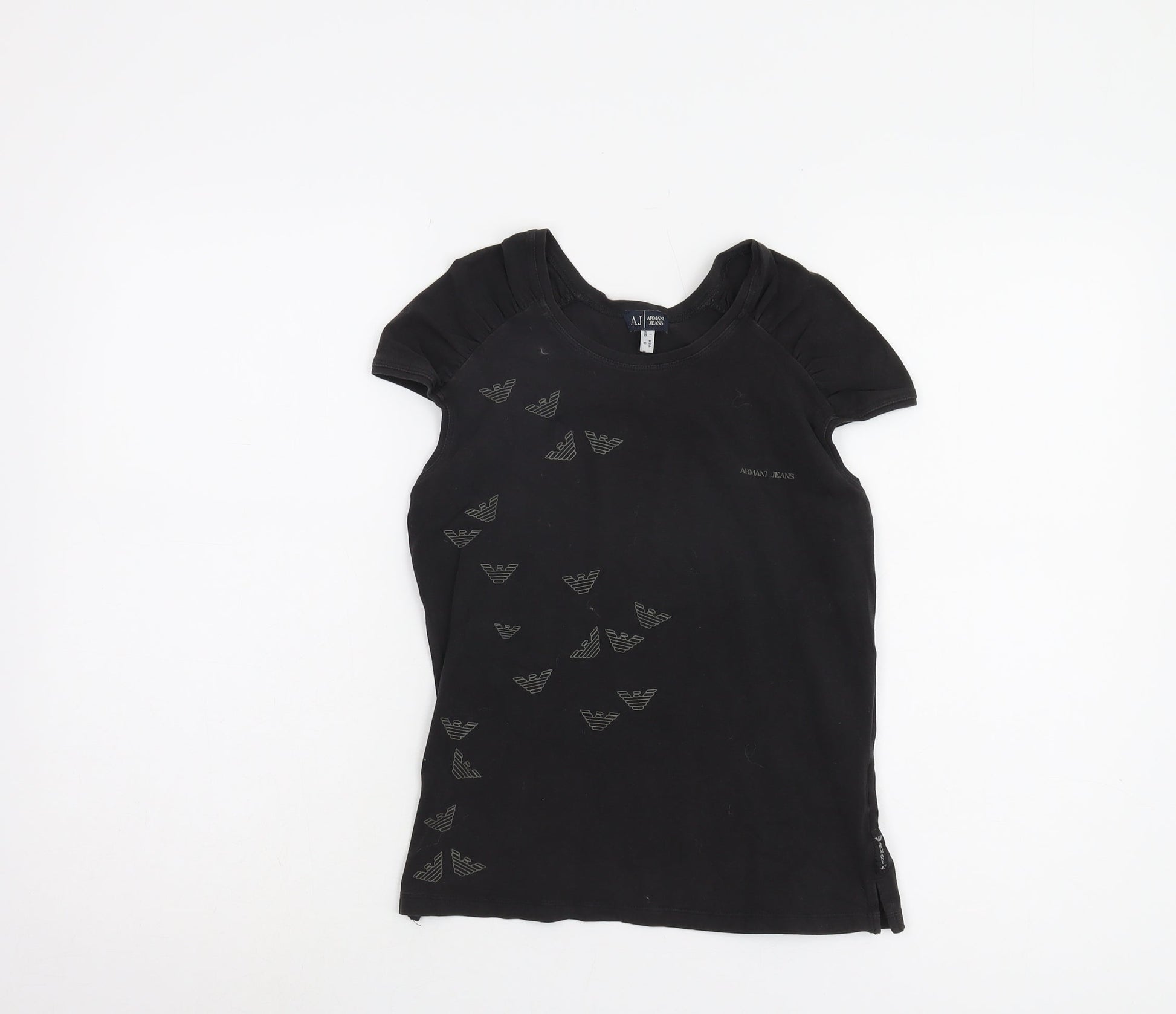 Armani Jeans Women's Black T-Shirt, Size 10, Short Sleeve
