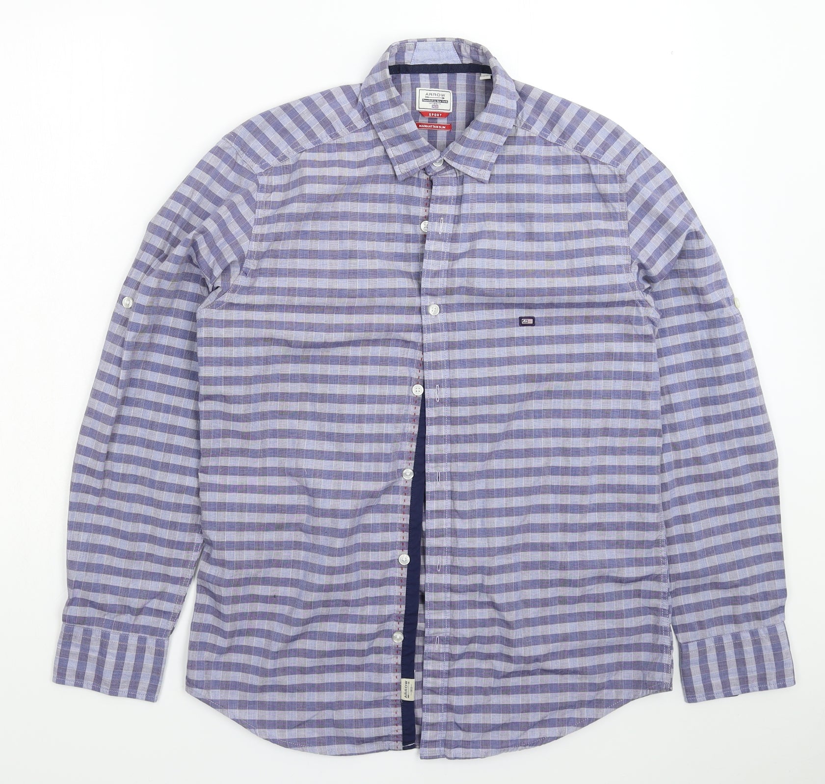 Arrow Mens Blue Striped Button-Up Size M