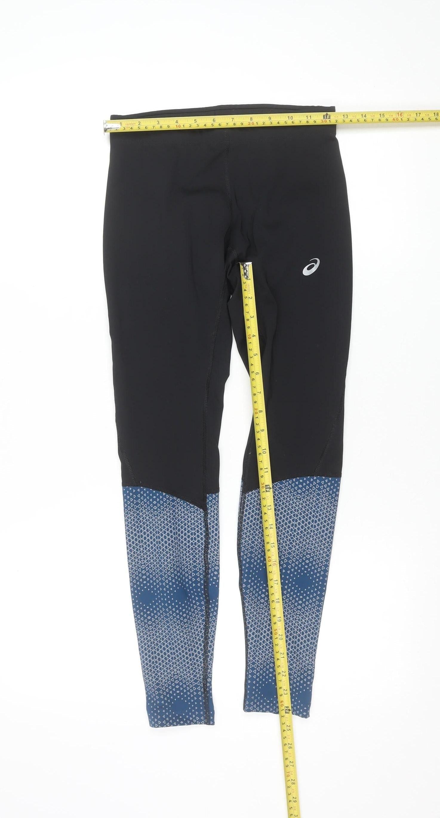 Asics Womens Black Blue Running Leggings Size S Moisture Wicking