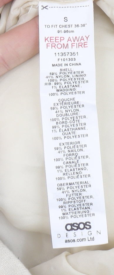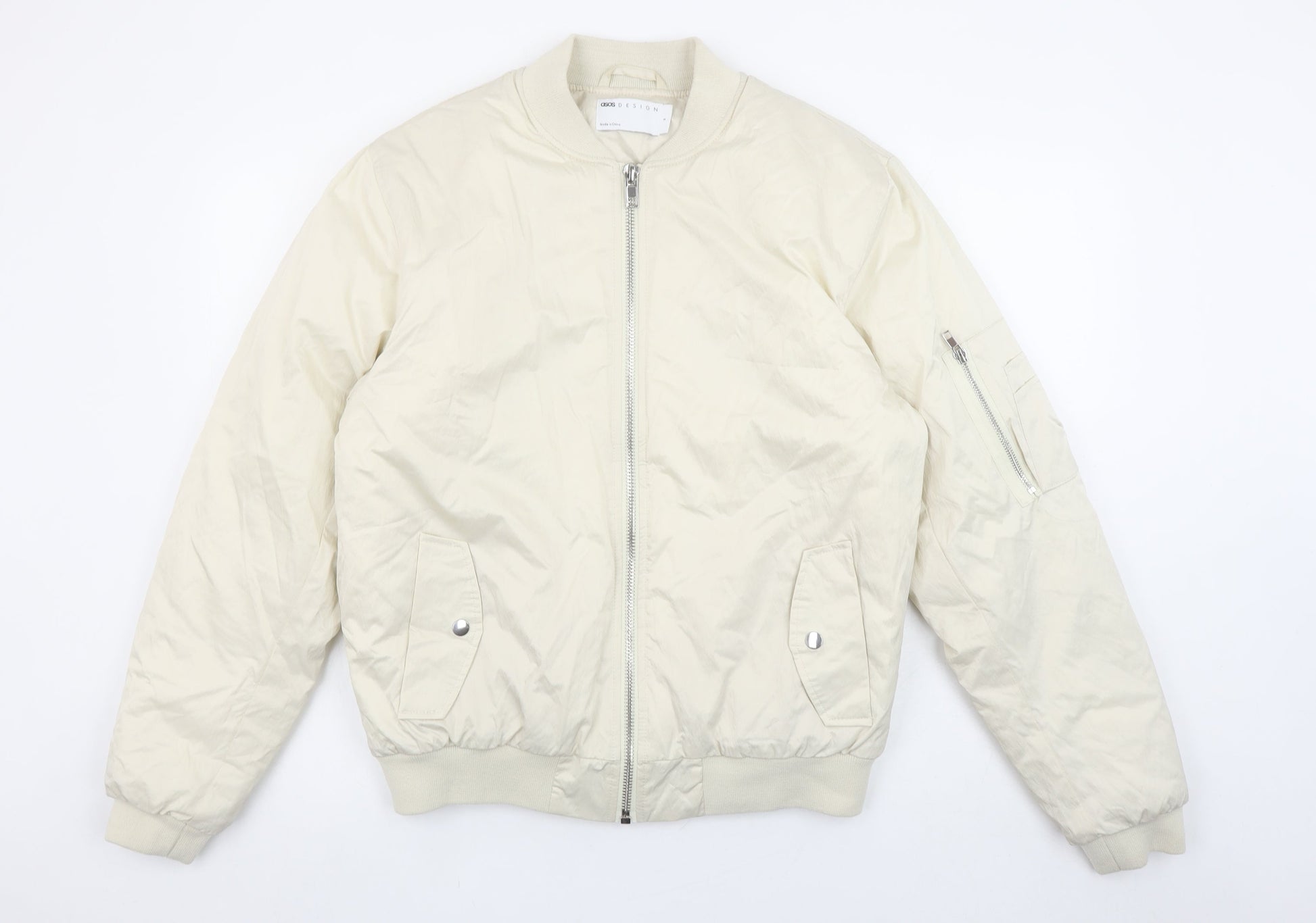 ASOS DESIGN Men's Beige Bomber Jacket S Regular Fit Full Zip