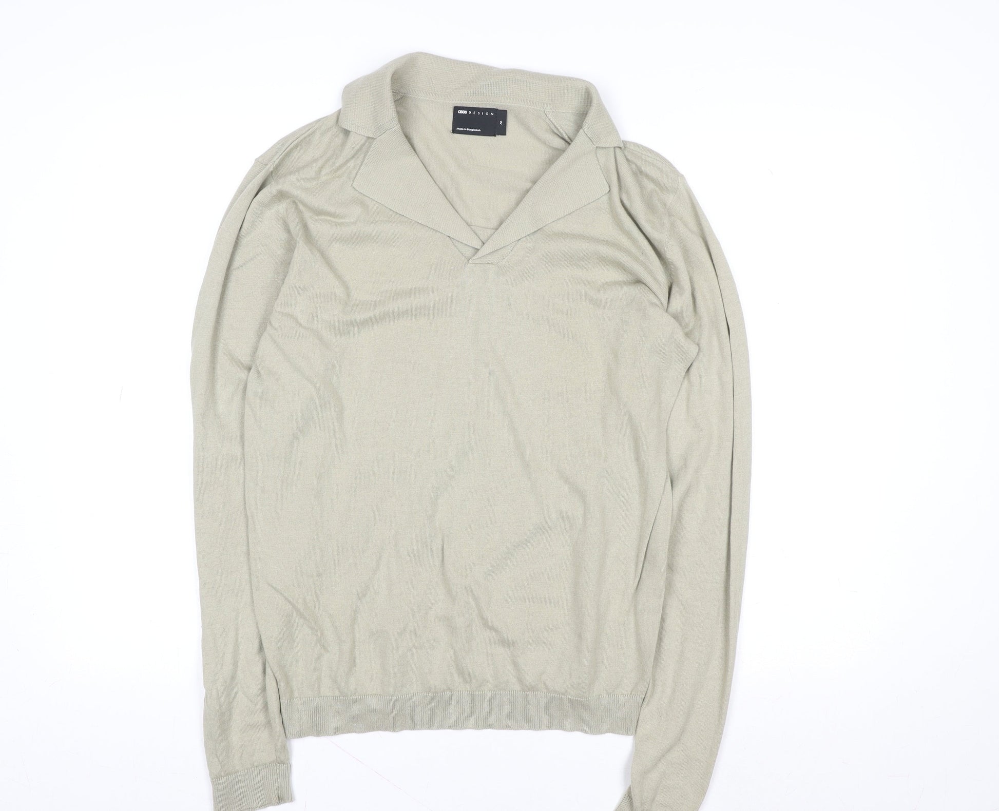 ASOS DESIGN Men's Beige Long Sleeve Cotton Polo Shirt M