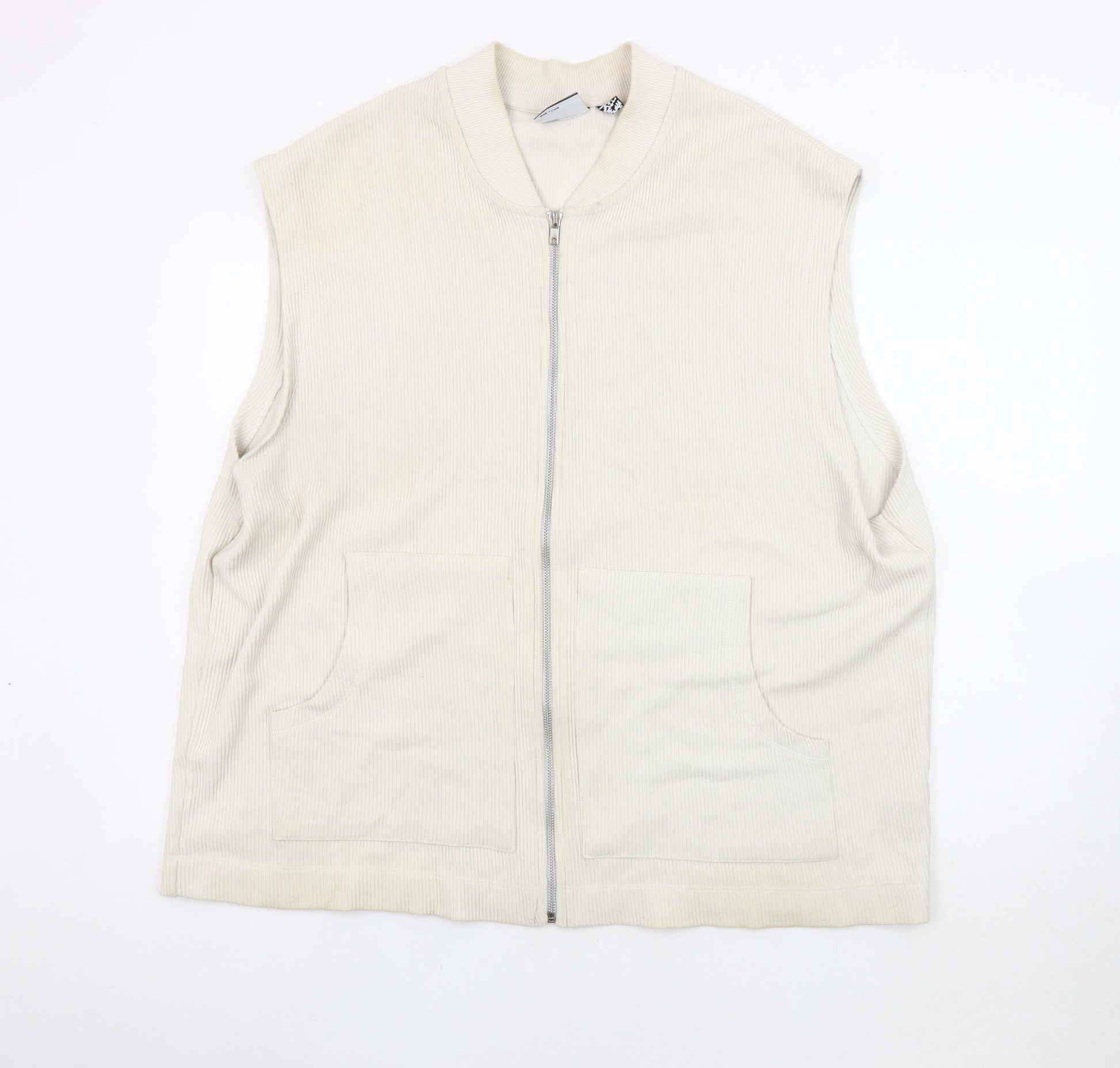 ASOS Design Men's Beige Waistcoat, 2XL, Full Zip Cotton
