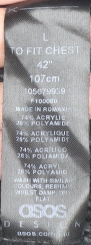 ASOS DESIGN Men's Black Roll Neck Check Jumper L