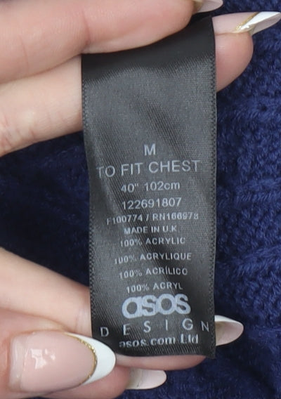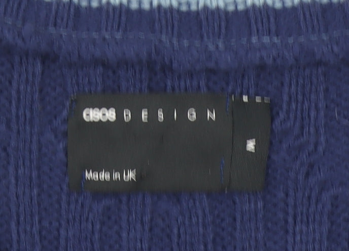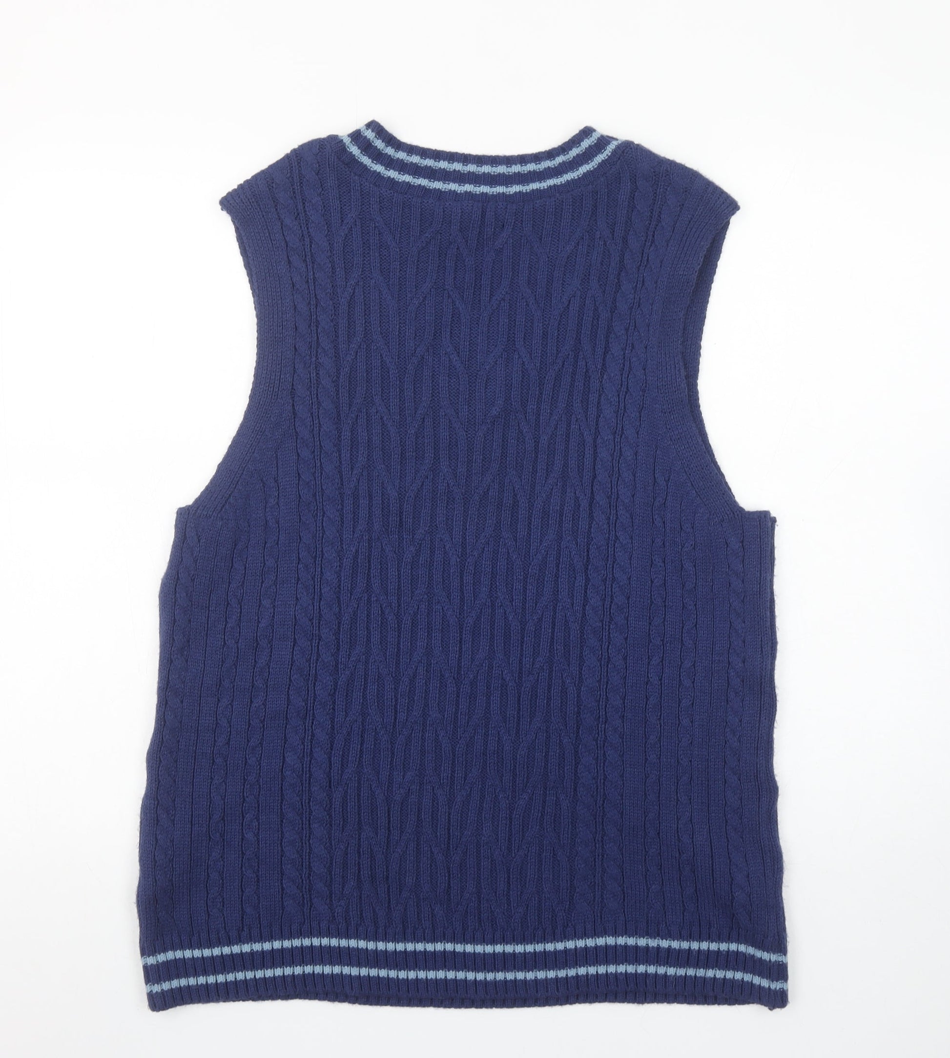 ASOS DESIGN Men's Blue Cable-Knit Sleeveless V-Neck Vest M