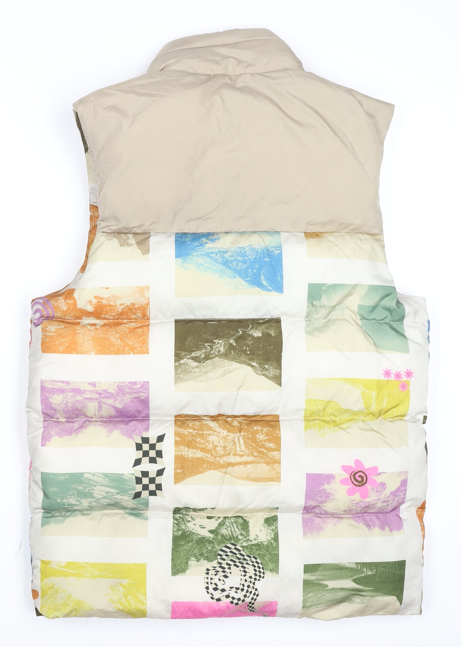 ASOS DESIGN Men's Multicoloured Puffer Waistcoat 2XS Stand-Up Collar