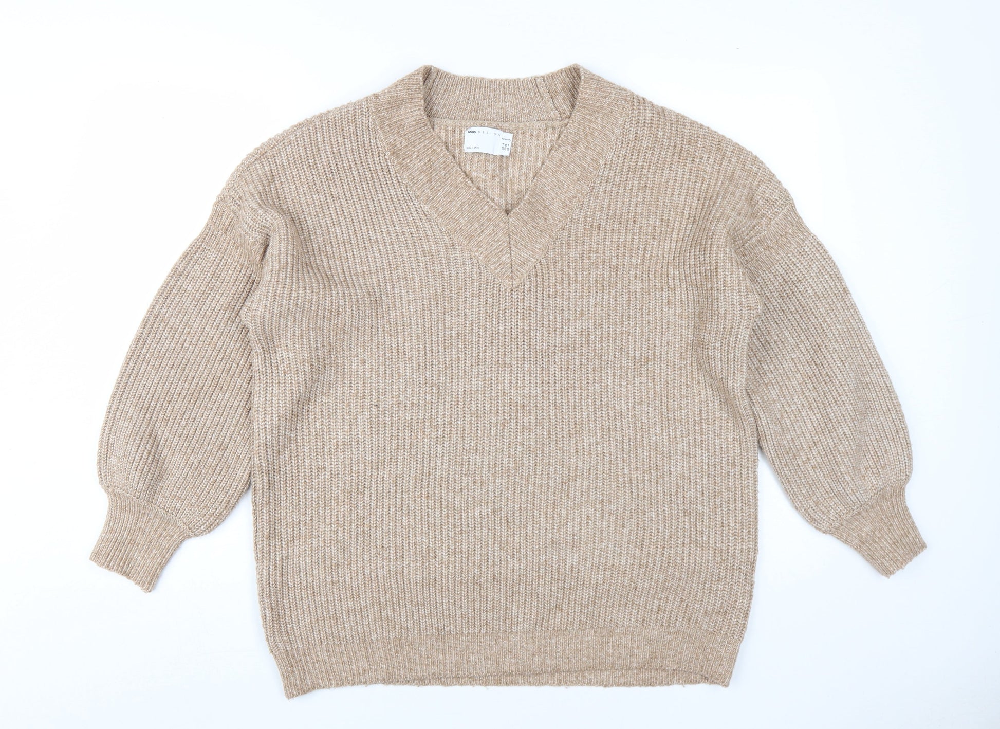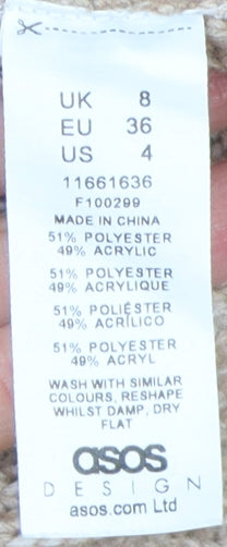 ASOS Design Women Beige V-Neck Pullover Jumper Size 8