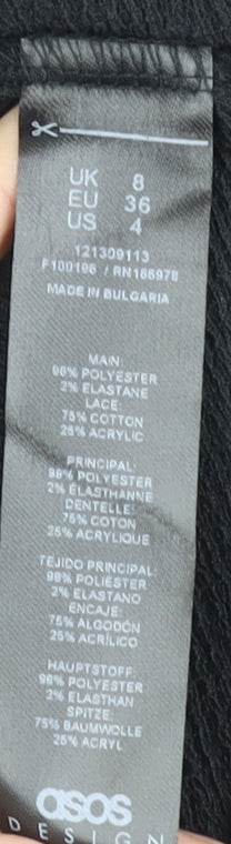 ASOS Design Women Black Size 8 Bohemian Embroidered Long Sleeve Short Dress