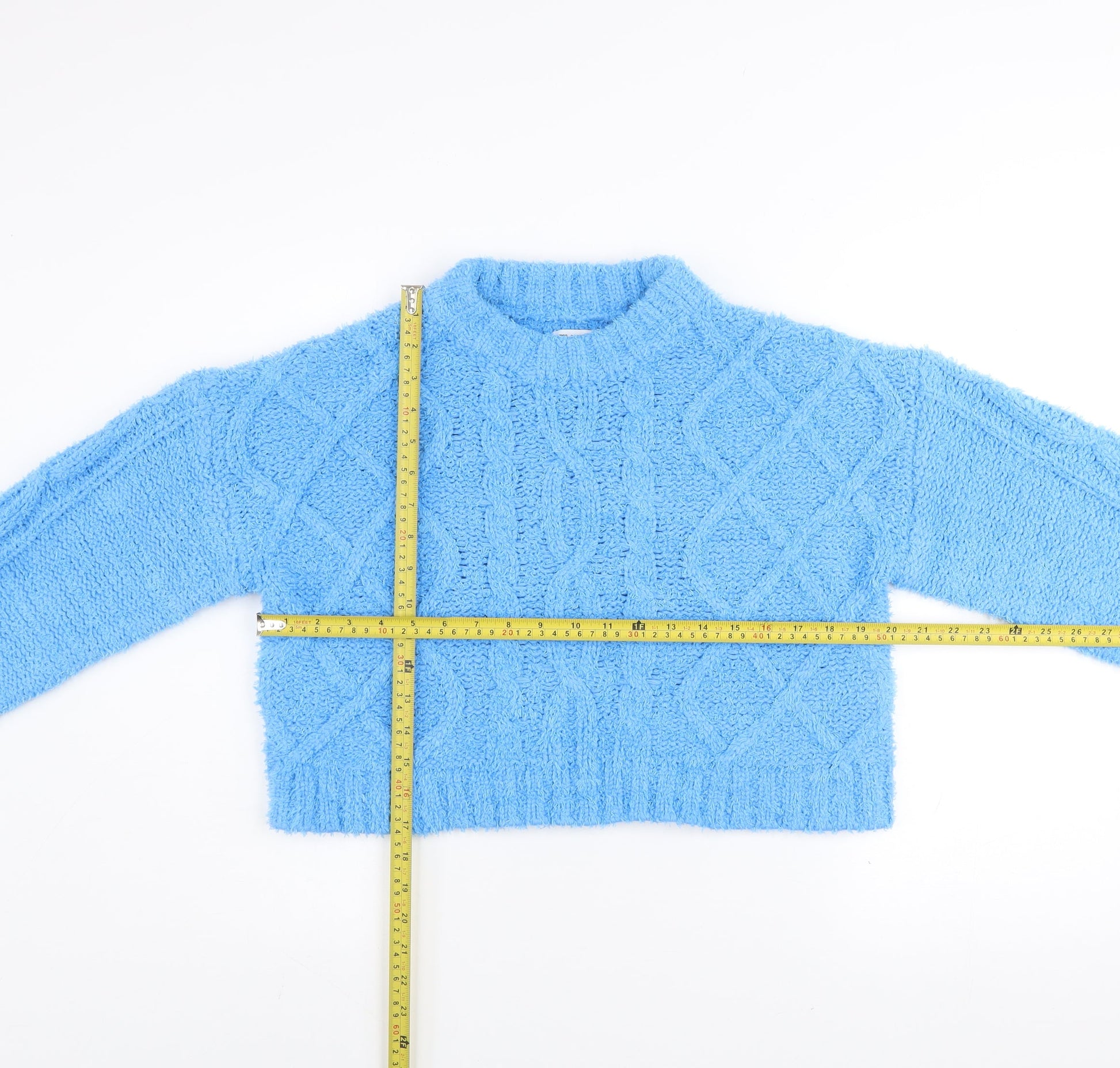 ASOS DESIGN Women Blue Cable-Knit Crew Neck Cropped Jumper Size 8