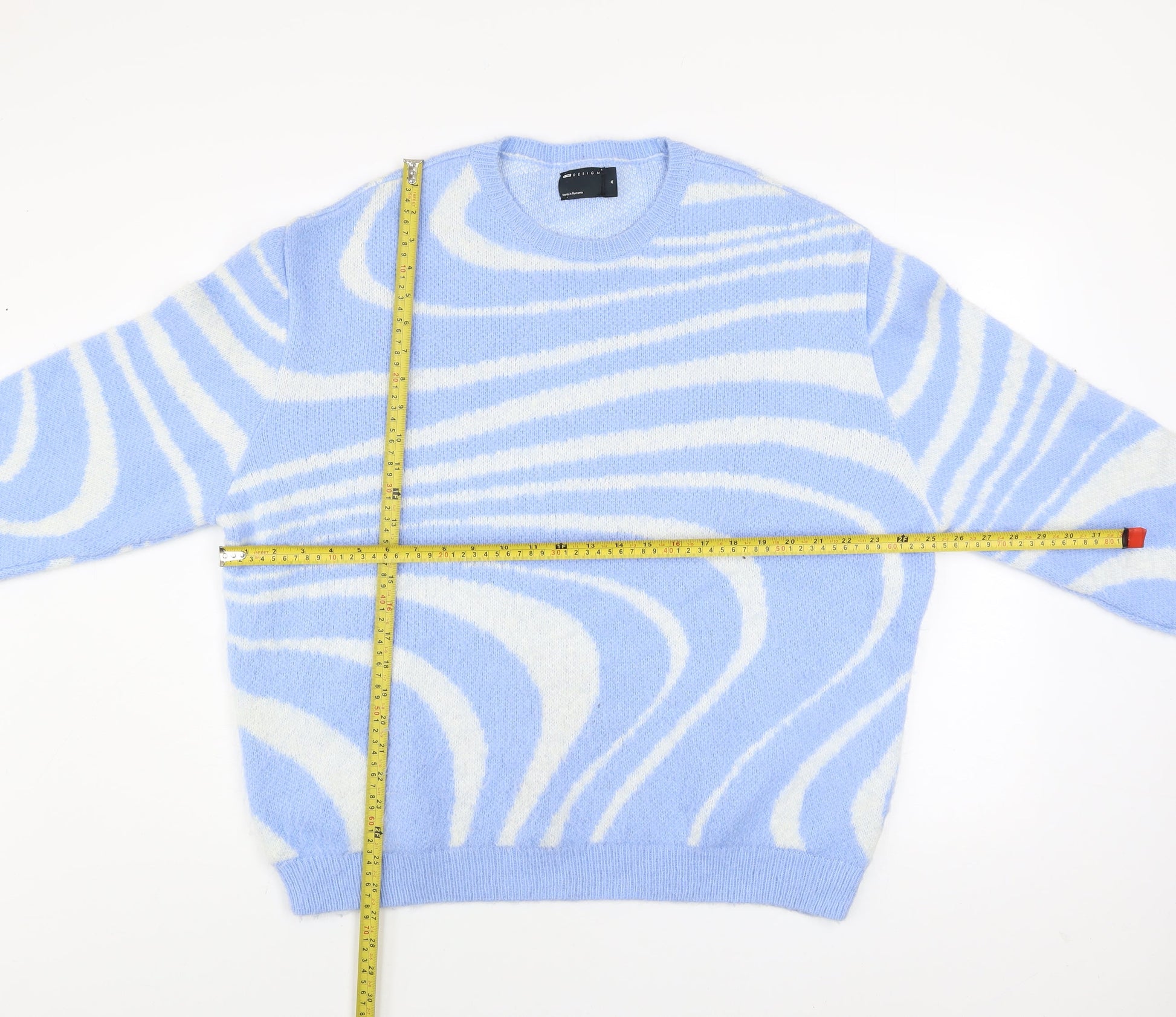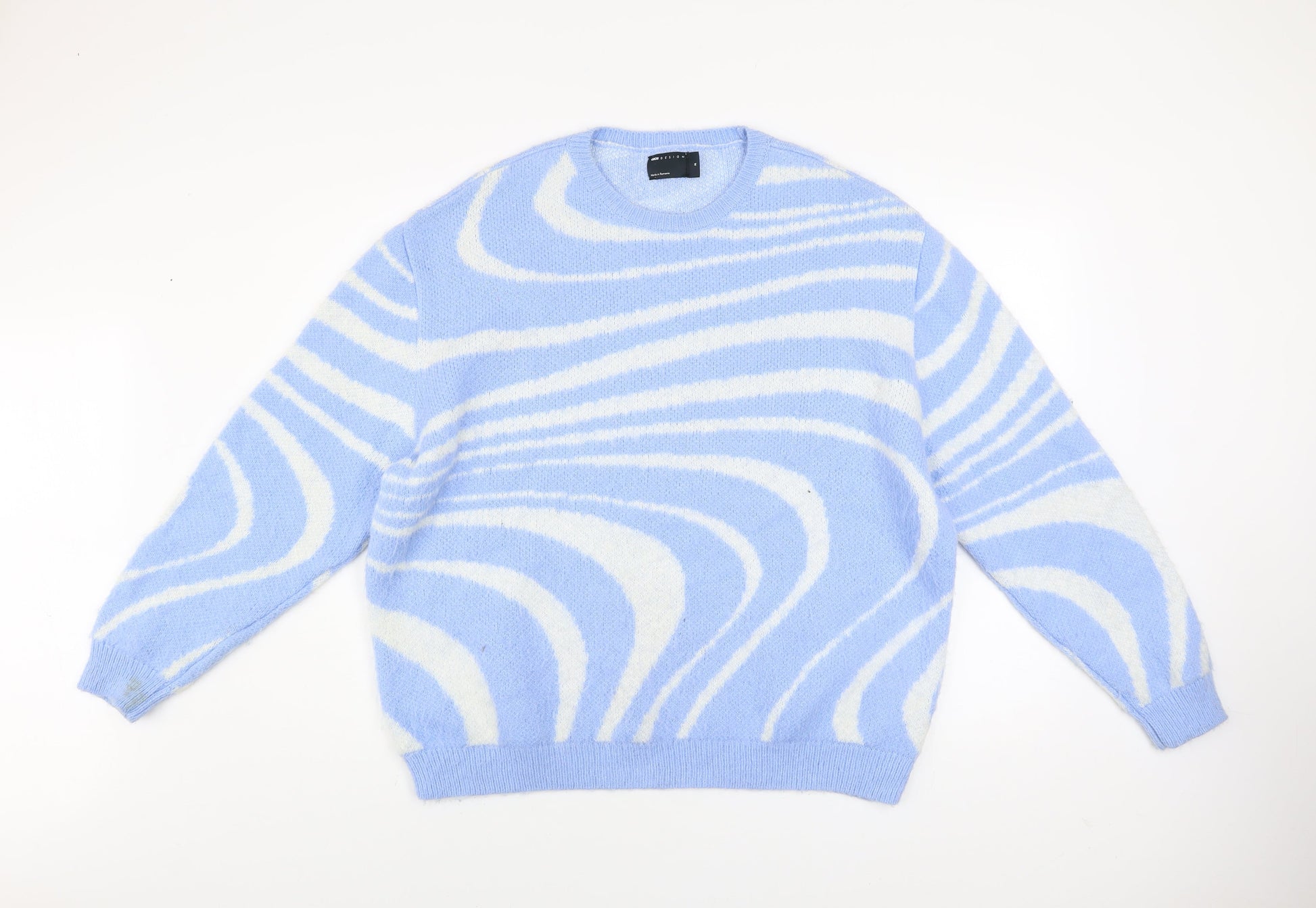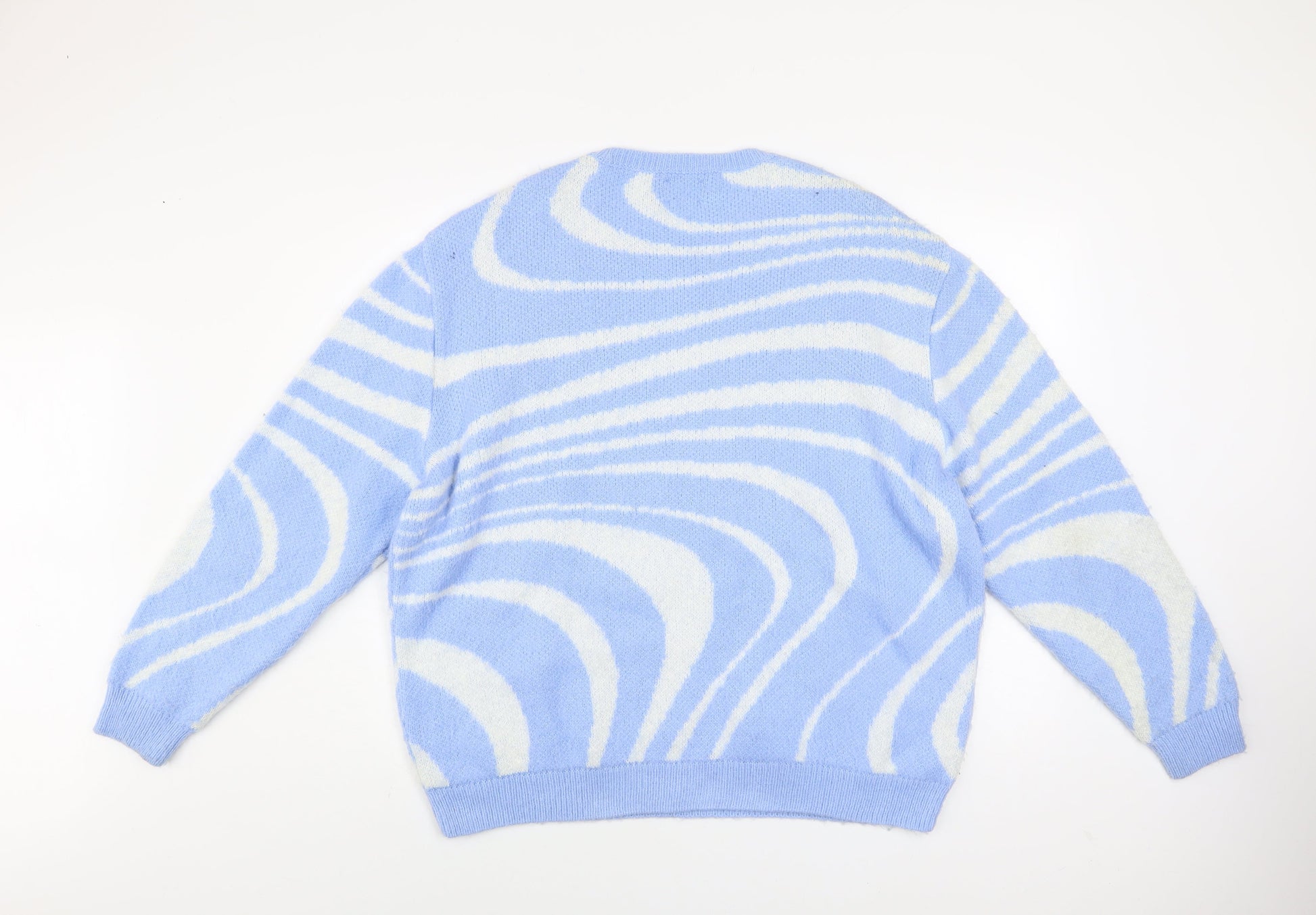 ASOS Design Women Blue & White Pullover Jumper M Knit Crew Neck