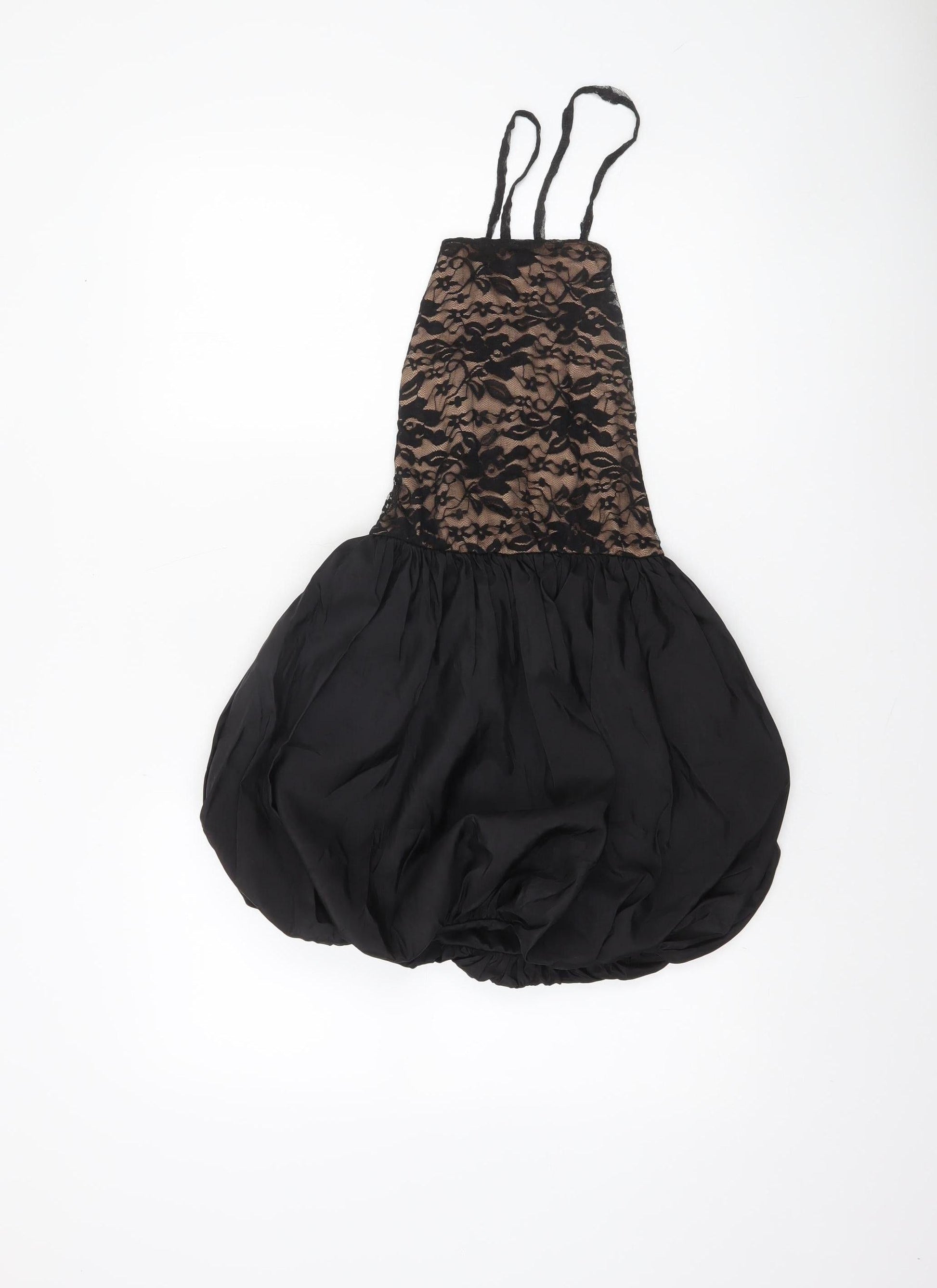 ASOS DESIGN Women’s Black Lace Halter Bubble Hem Party Dress UK 8-10