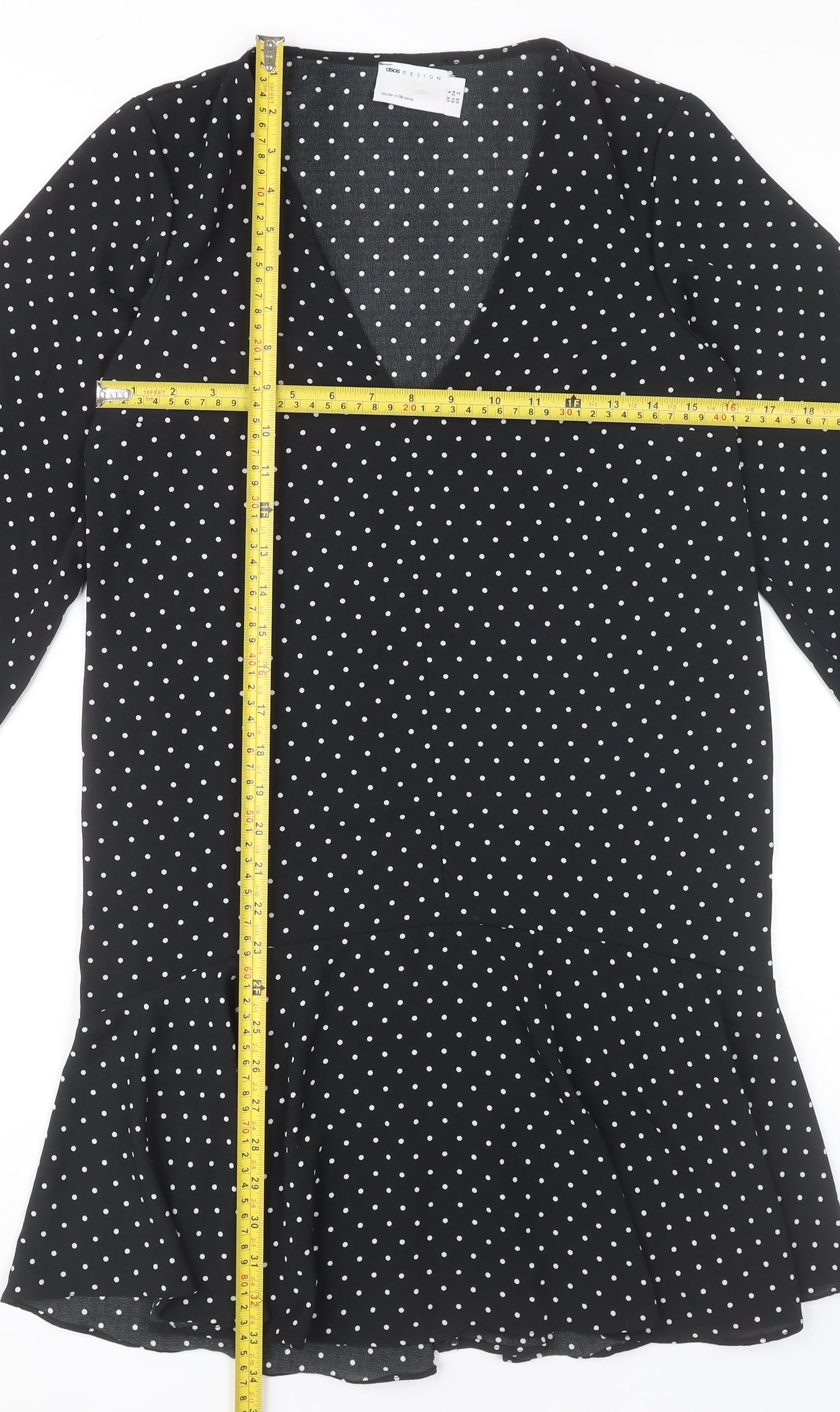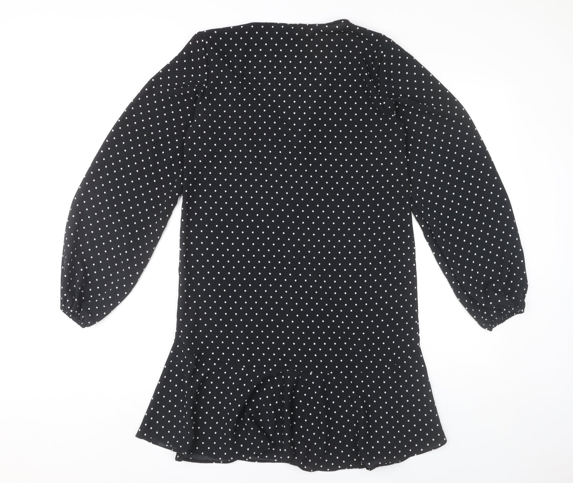 ASOS Design Women’s Black Polka Dot Shift Dress Size 6 Long Sleeve V-Neck