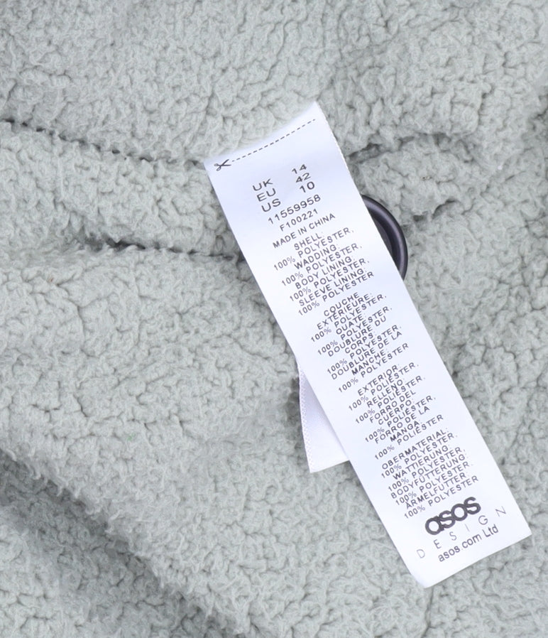 ASOS DESIGN Women’s Green Puffer Jacket UK 14 Hooded Quilted Winter Coat